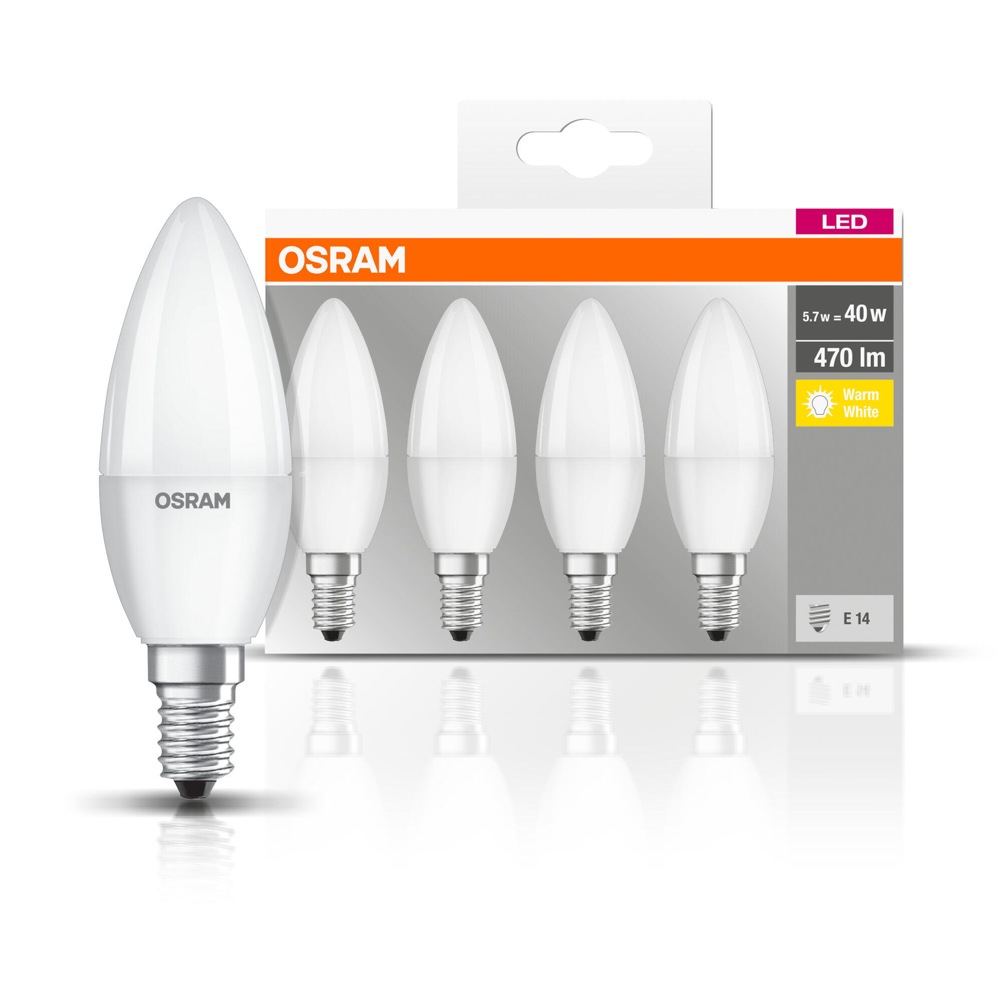 Set da 4 lampadine LED, E14 goccia, fumé, luce calda, 5.5W= 470 LM (equiv 40 W), 220°, OSRAM