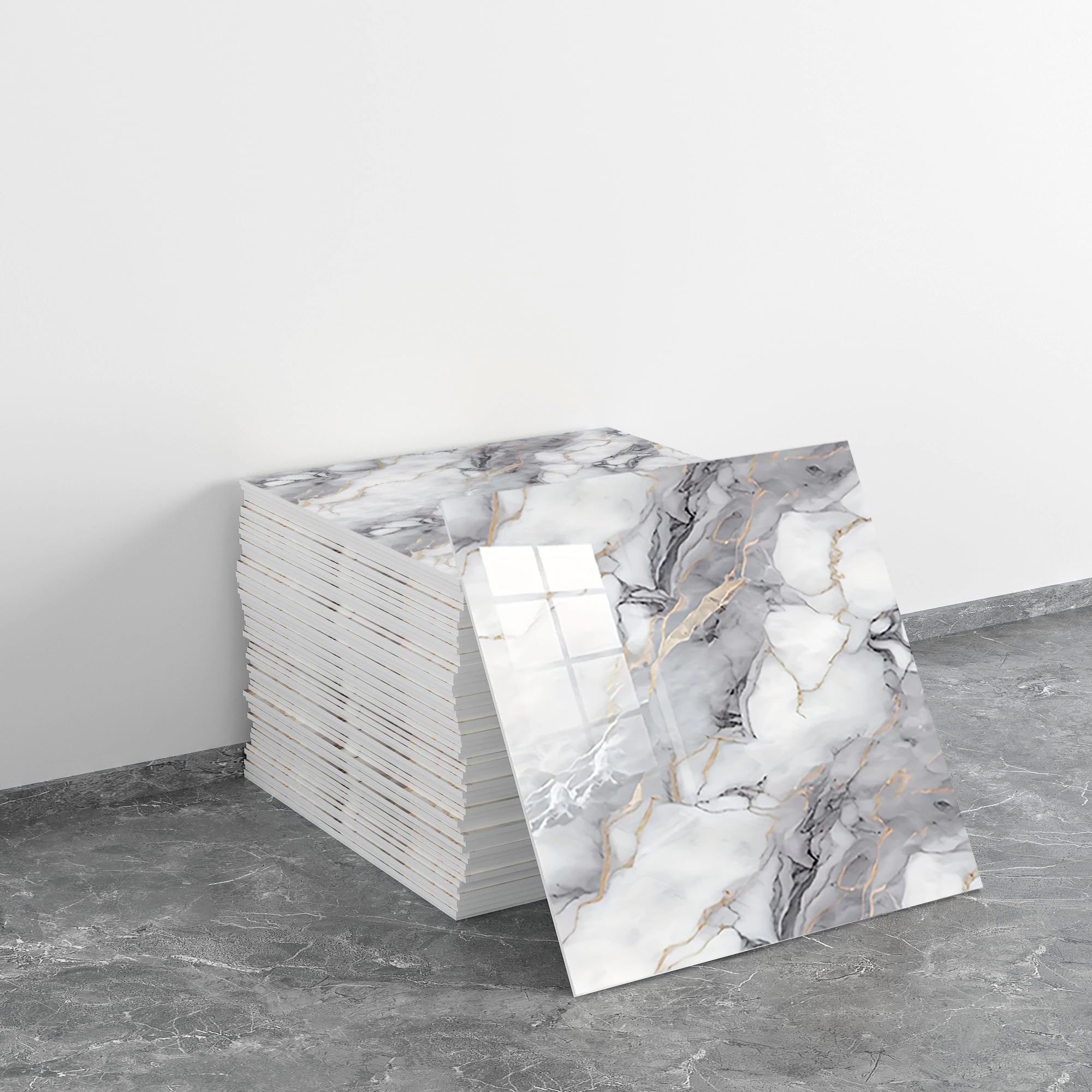 Set di 20 adesivi murali effetto marmo, pannelli doccia in PVC impermeabili, adatti per camere da letto e cucine, 30x30 cm (01)