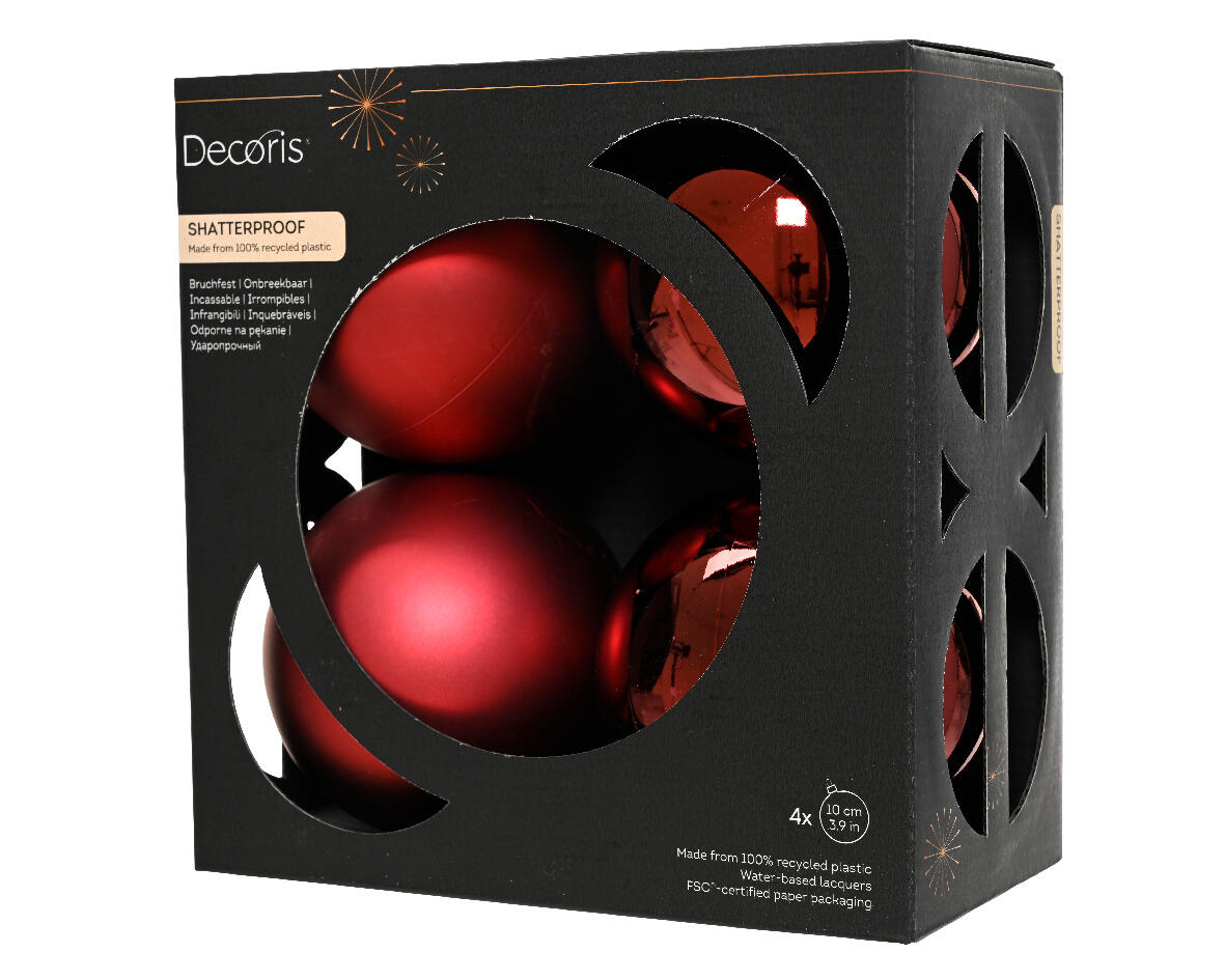 Set di palline natalizie in polistirene rosso confezione da 4 pezzi