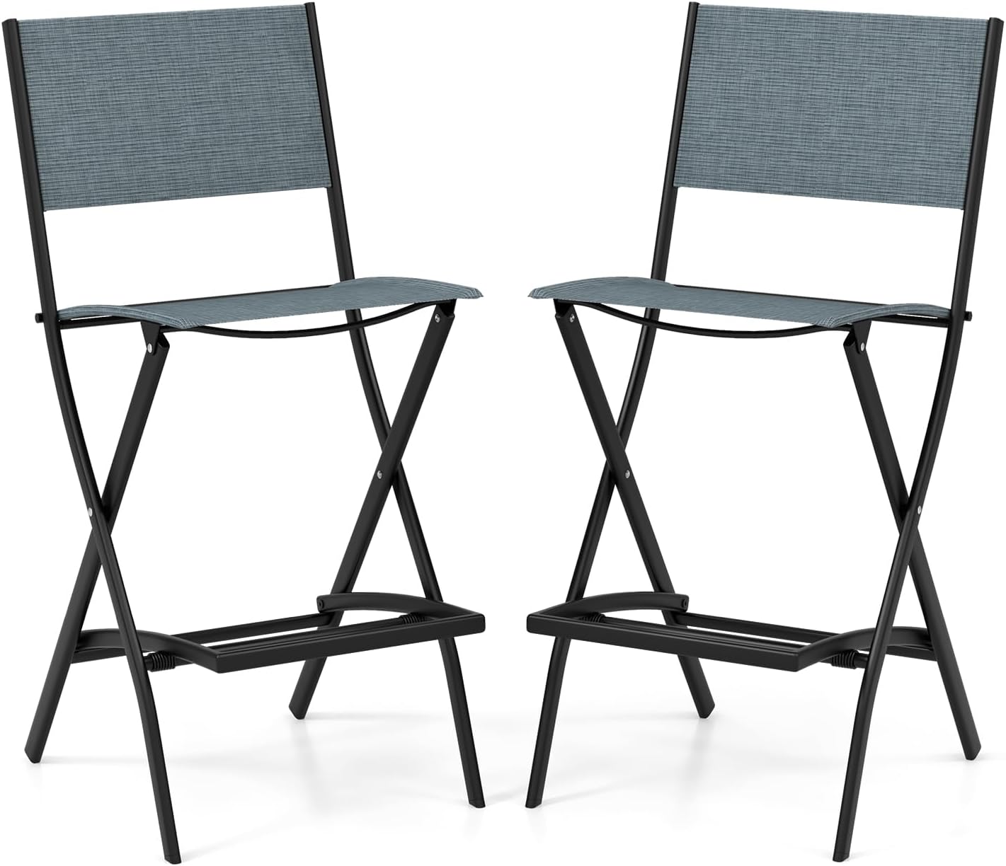 Set di Sgabelli da Bar 2 Pezzi, Sedie Alte e Pieghevoli con Telaio in Metallo e Poggiapiedi, Sedie da Bar per Balcone, Giardino e Piscina (Blu