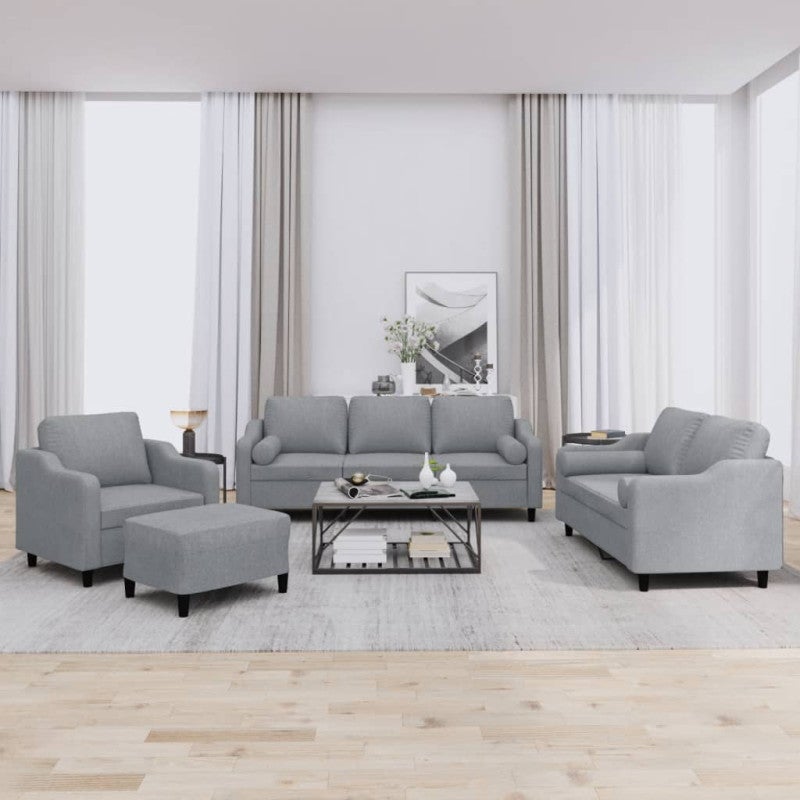 Set Divani 4 pz con Cuscini Grigio Chiaro in Tessuto vidaXL