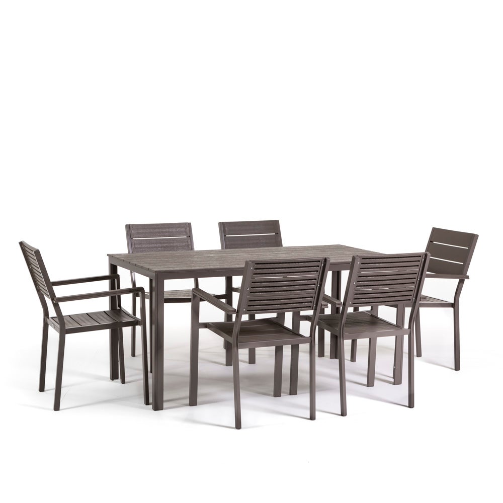 Set pranzo da giardino con tavolo e 6 sedie impilabili in acciaio e top in polietilene tortora