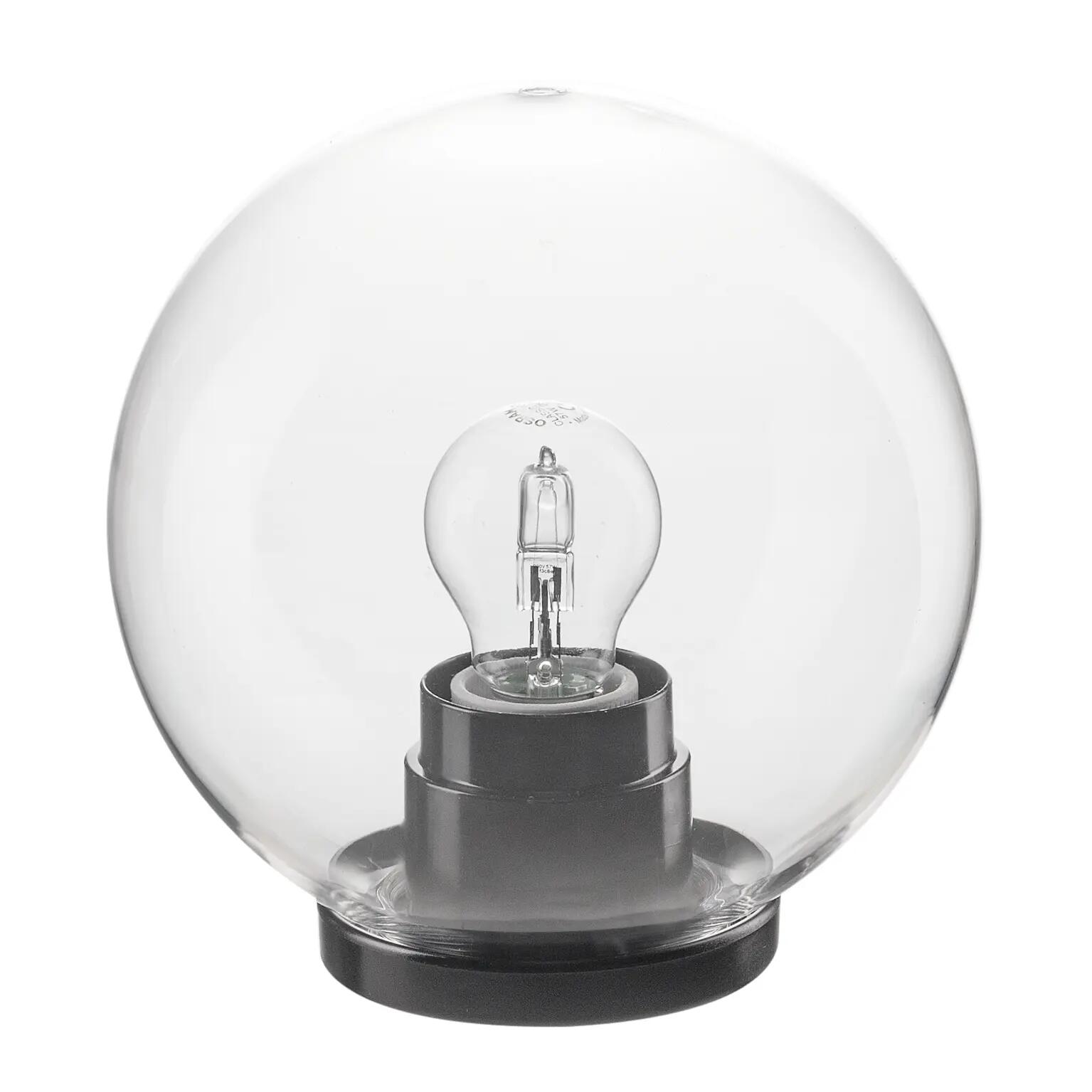 La sfera per palo è un globo per illuminazione esterna, realizzato in metacrilato trasparente, completo di base in policarbonato nero. È idoneo per installazione su palo o su braccio a parete dritto o inclinato. È completo di portalampada E27 in ceramica e accessori di fissaggio. La lampadina non è inclusa. Il prodotto è fabbricato in Italia e ha una classe di protezione 2, che indica che è un apparecchio elettrico con doppio isolamento. È un prodotto Scelta Responsabile perché ha un imballaggio ottimizzato che consente di aumentare l'efficienza dei trasporti, contribuendo a diminuire l'impatto sull'ambiente. È inoltre realizzato con il 15% di materiale riciclato, evitando il ricorso a nuove materie prime e favorendo un minore impatto ambientale.