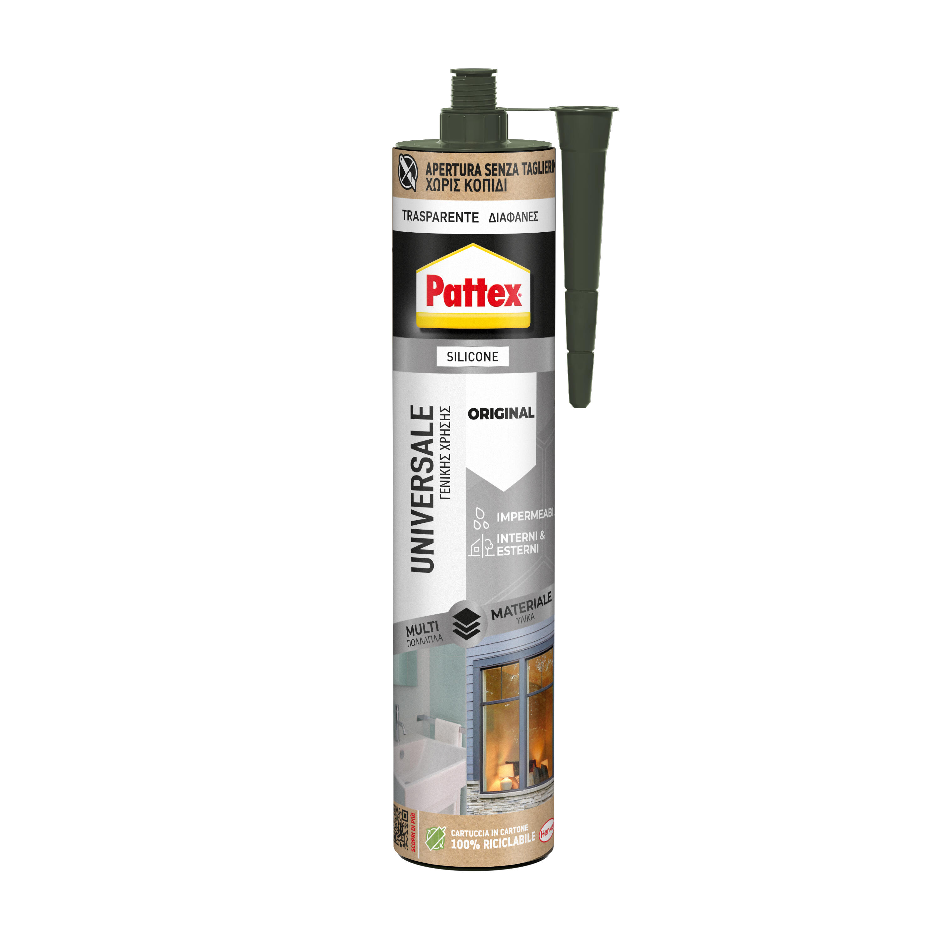Sigillante acetico trasparente ideale per sigillature di infissi, serramenti, bagni, box doccia, sanitari e cucine su materiali porosi e non porosi