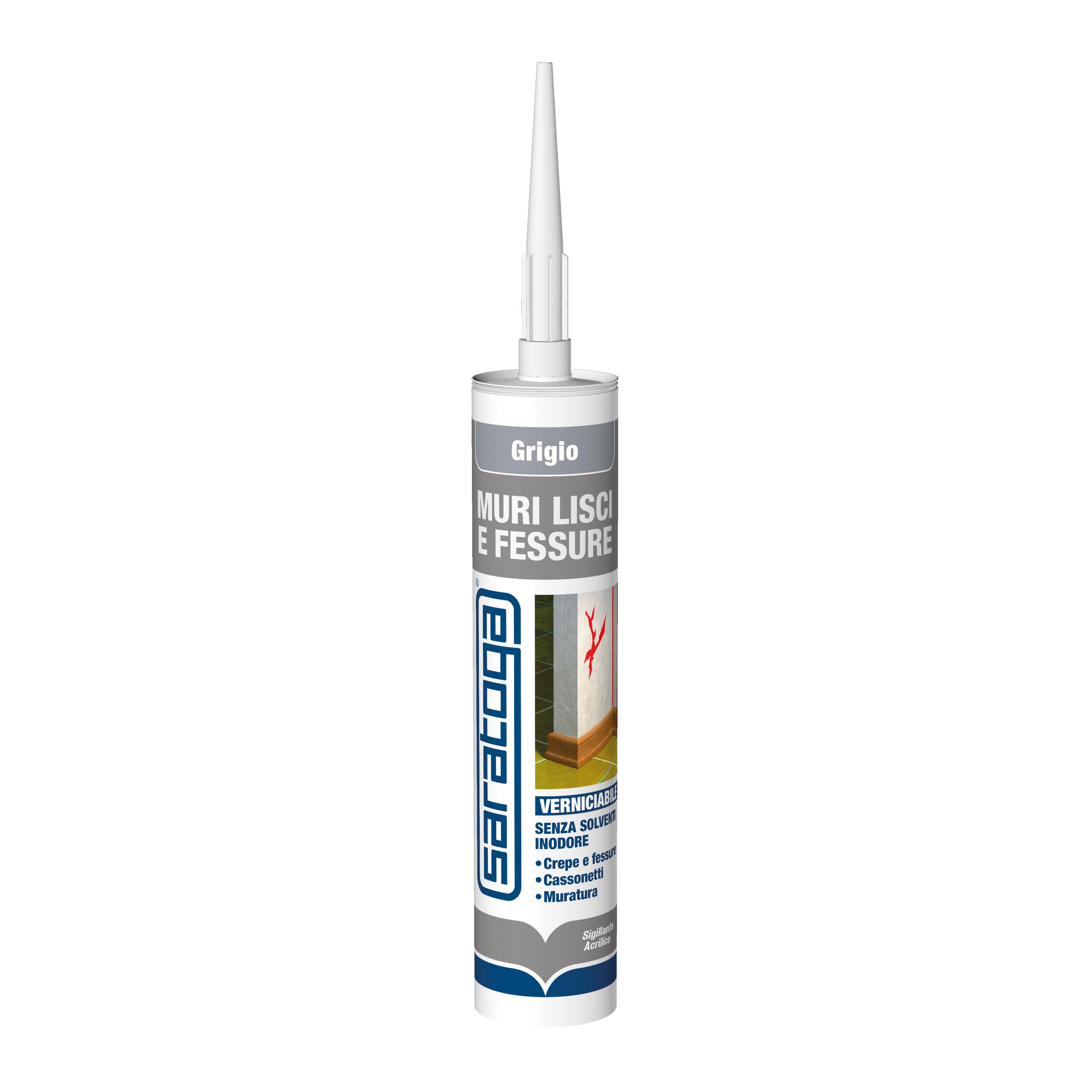 Il silicone sigillante SARATOGA Muri Lisci e Fessure da 280 ml è un prodotto verniciabile e inodore, ideale per riparare e sigillare muri, soffitti e fessure sia all'interno che all'esterno. Resiste alle torsioni e si applica con pistola.