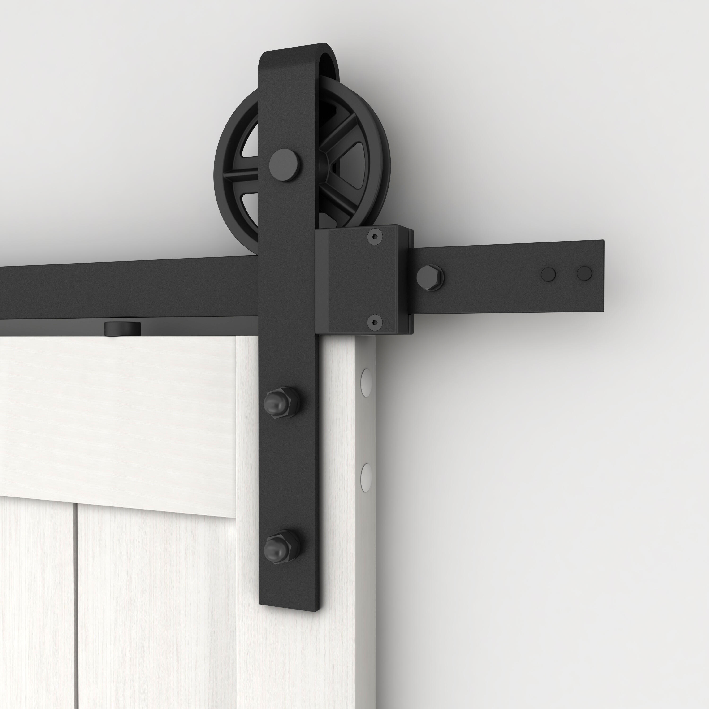 Binario di scorrimento Rodeo in acciaio nero per ante in legno, lungo 2m, maniglia per anta inclusa.