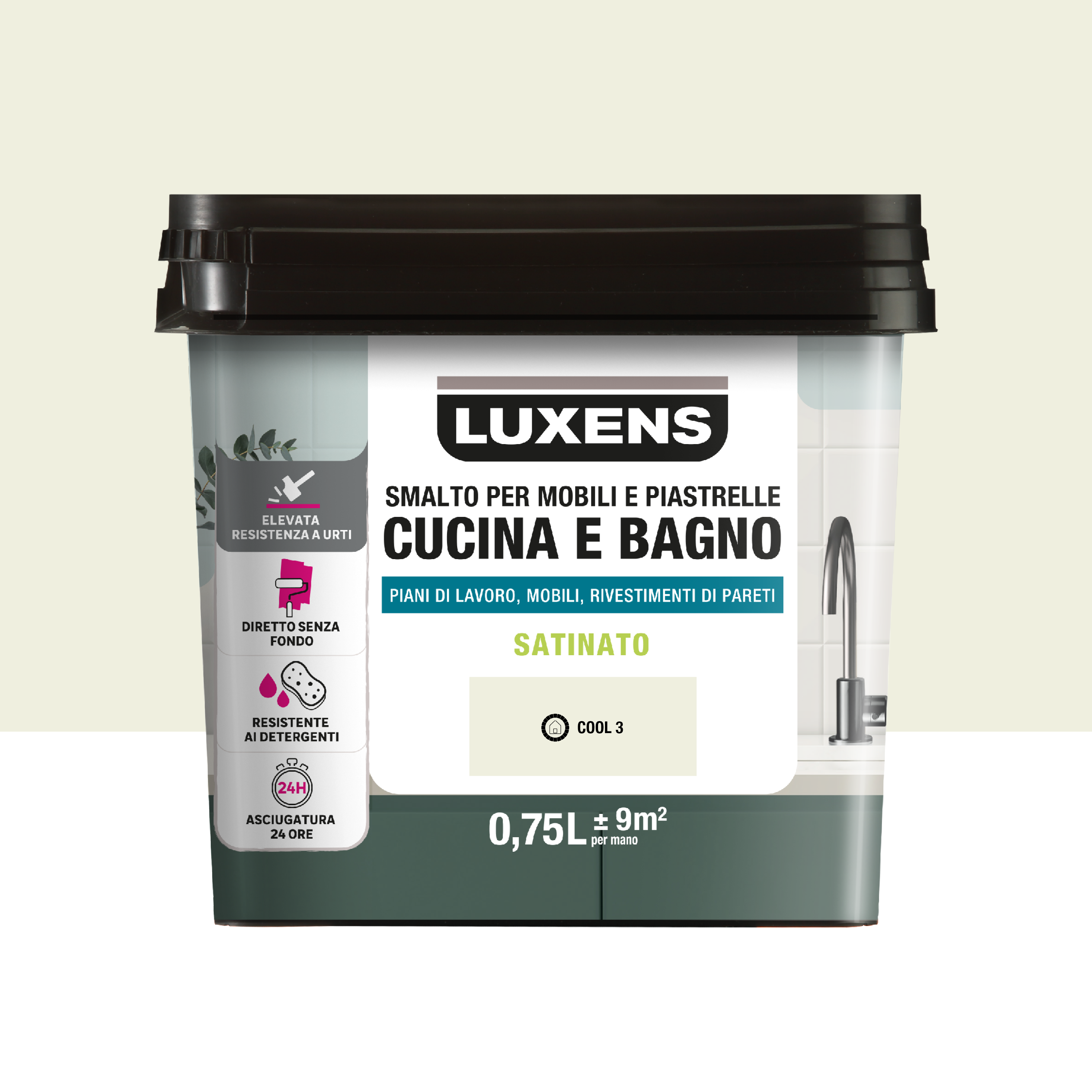 Smalto da interno per mobile e piastrelle super lavabile, antimacchia, LUXENS Cucina e Bagno bianco cool 3 satinato, 0.75 L