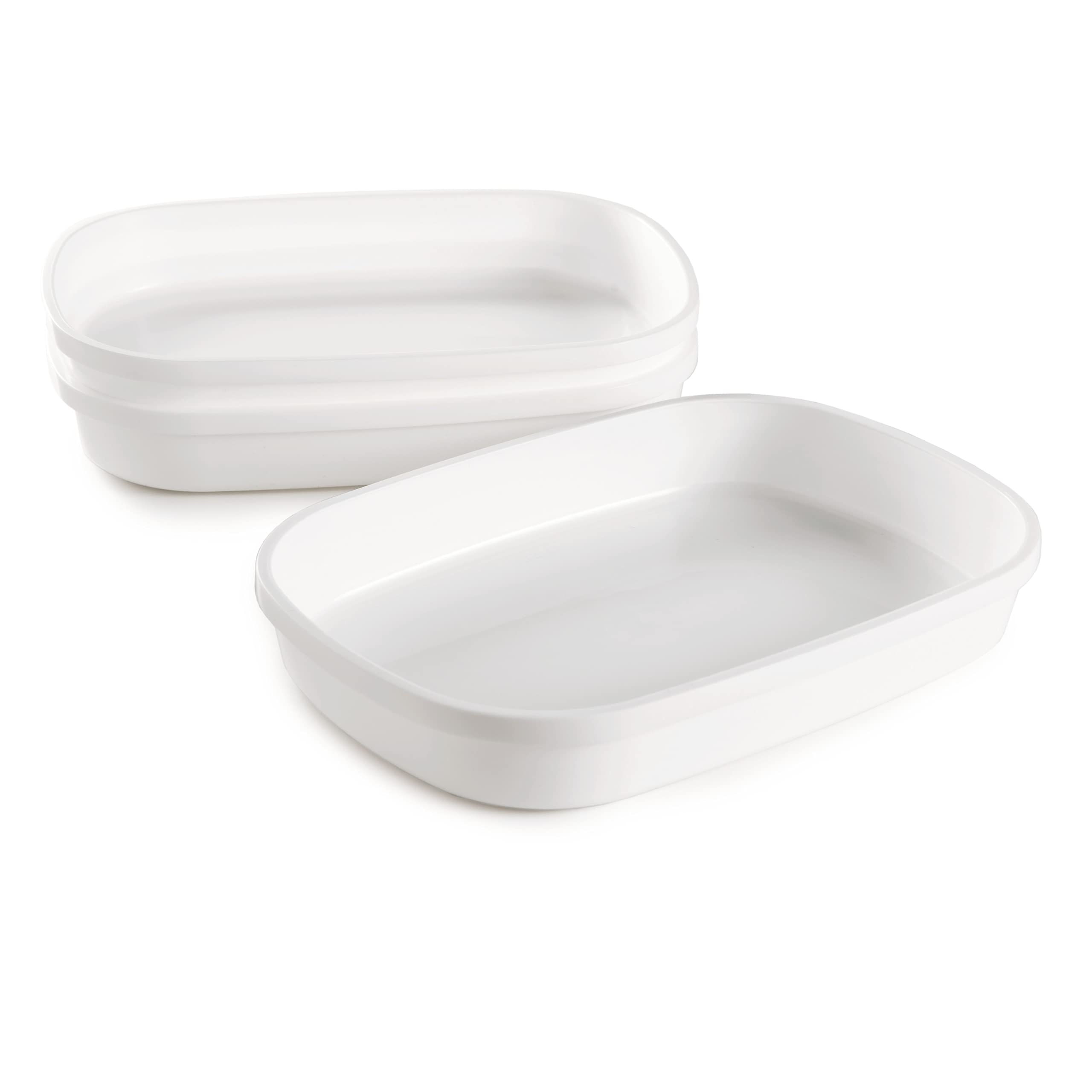 SET DI TRE CONTENITORI PER UNA IMPANATURA PRATICA E VELOCE. UTILIZZABILE IN MICROONDE MAX 400 W PER UN MAX DI 3 MIN E IN FRIGORIFERO SINO A +3°C. LAVABILE IN LAVASTOVIGLIE MAX 45°C.