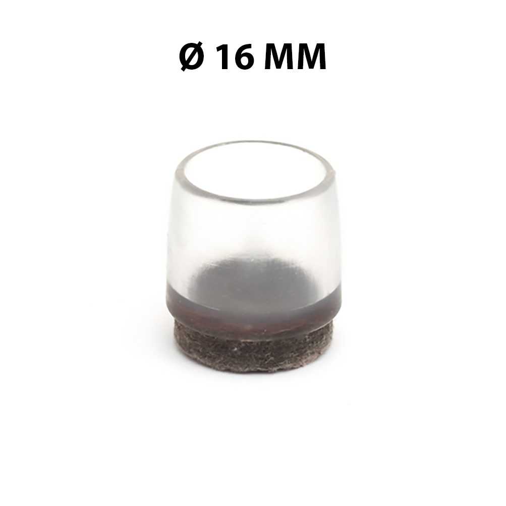 CONFEZIONE 8 PUNTALI CON FELTRO Ø 16 TRASPARENTI. PROTEGGONO I PAVIMENTI E GARANTISCONO UN OTTIMO SCIVOLAMENTO DELLE SEDIE.