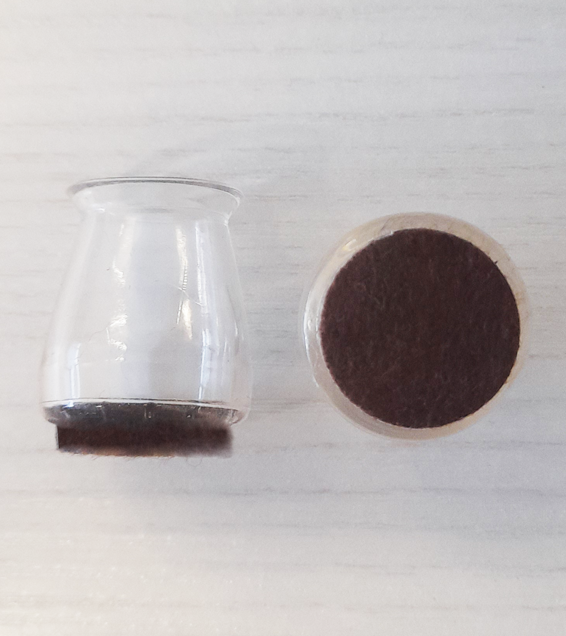 Confezione di 2 calzanti antigraffio rotondi trasparenti per sedia in silicone e feltro; adattabile per diametro 18-25 mm. Non rovina le superfici. Ideale per proteggere il pavimento da fastidiosi graffi e segni, garantendo stabilità alla sedia. Il colore trasparente è adattabile per tutti i tipi di ambiente.