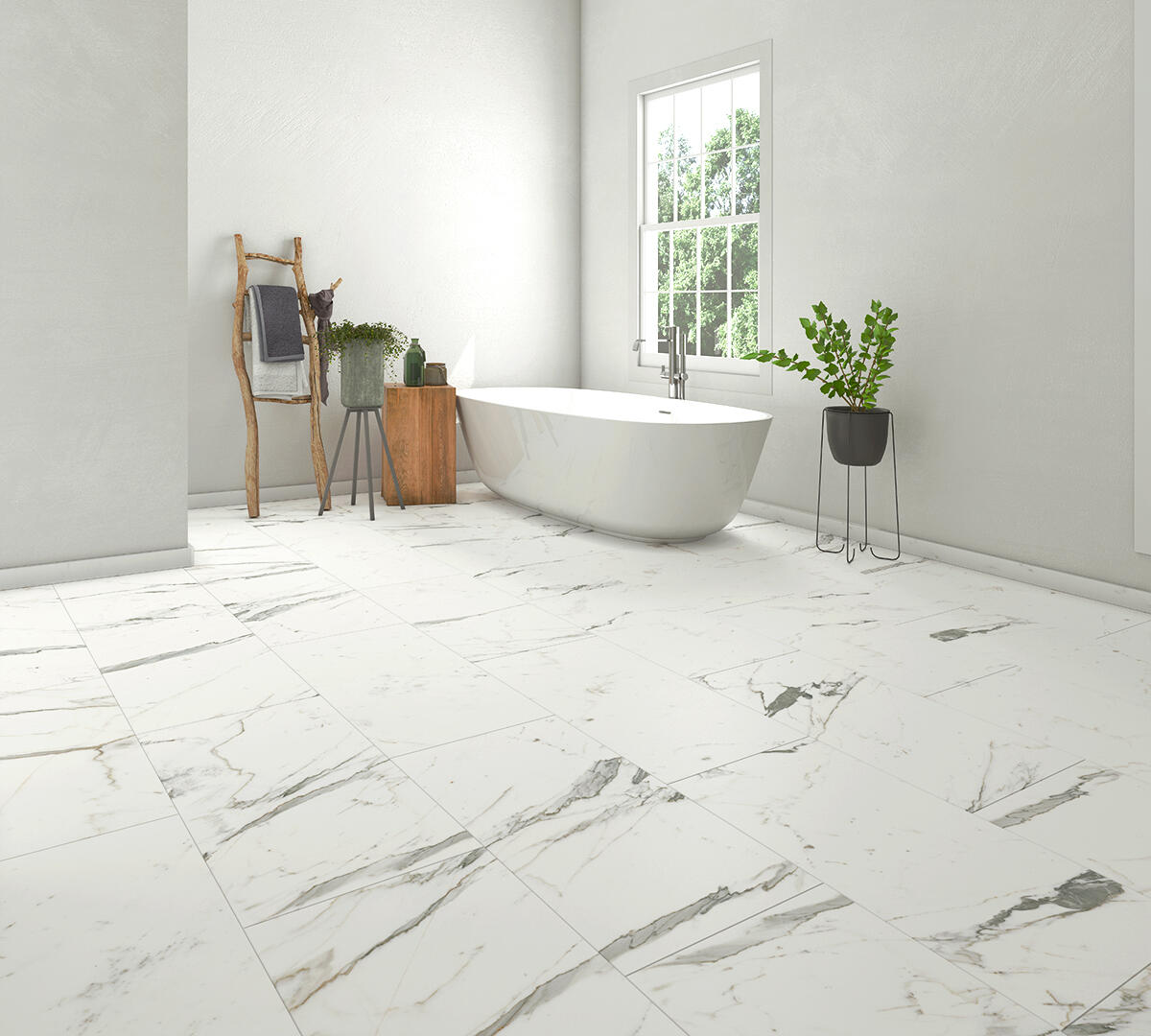 SPC da incollare per pavimento e rivestimento Carrara bianco Sp 3 mm CERAMIN 3.7 m²