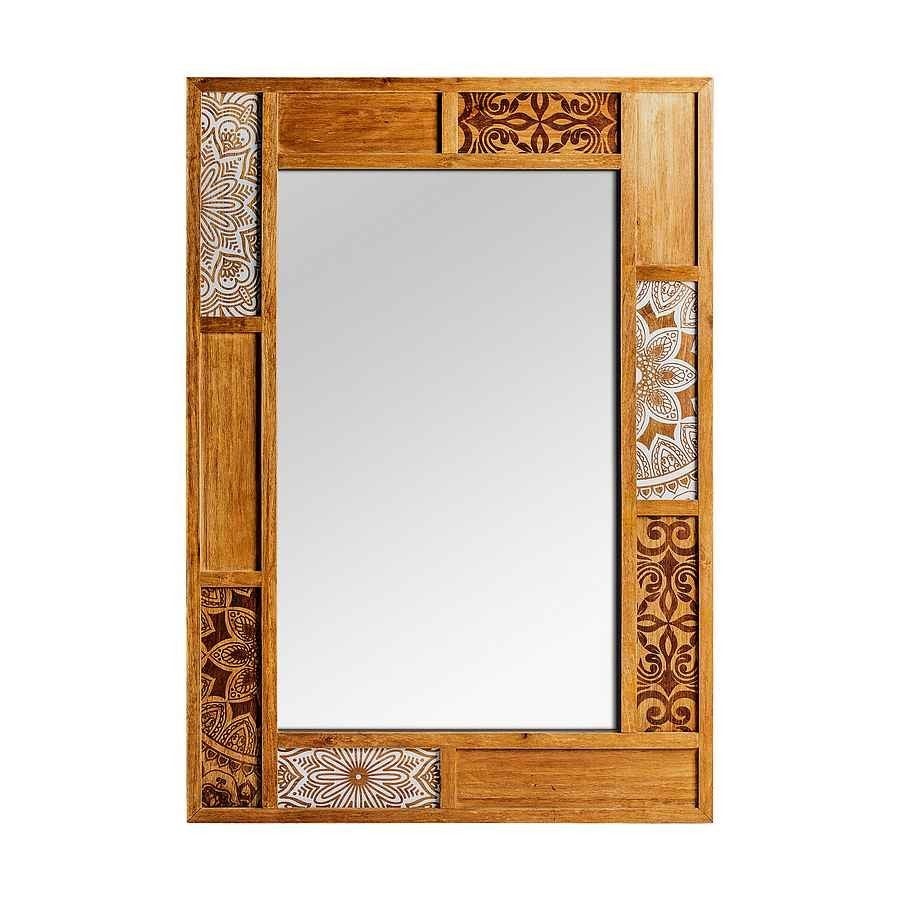 Specchio decorativo, modello di formato rettangolare TUNEZ. Uno specchio unico, perfetto per dare un tocco rustico - esotico irresistibile in qualsiasi spazio. La struttura in legno di abete rosso con finitura naturale, porterà calore alla tua casa. La decorazione che combina diversi disegni gli conferisce il tocco più speciale. Ideale per sale, camere da letto, salotti o bagni.