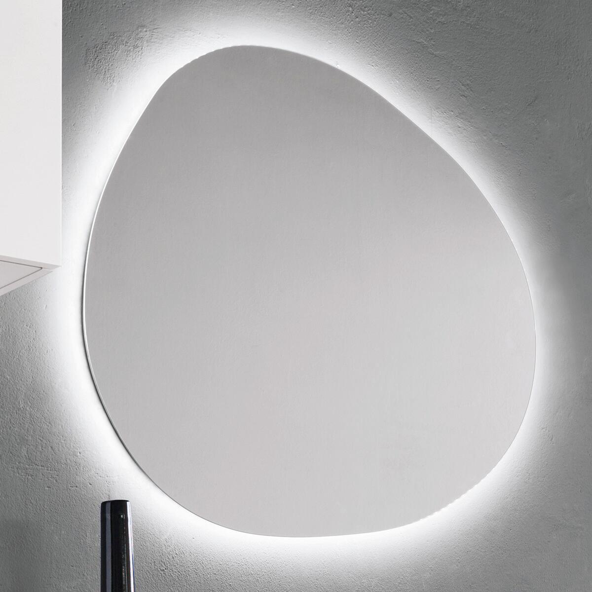 Specchio ovale con luce integrata, dimensioni L 90 x H 78 x P 2.5 cm. L'illuminazione LED permette un basso consumo energetico, nonché una maggiore efficienza e durata.