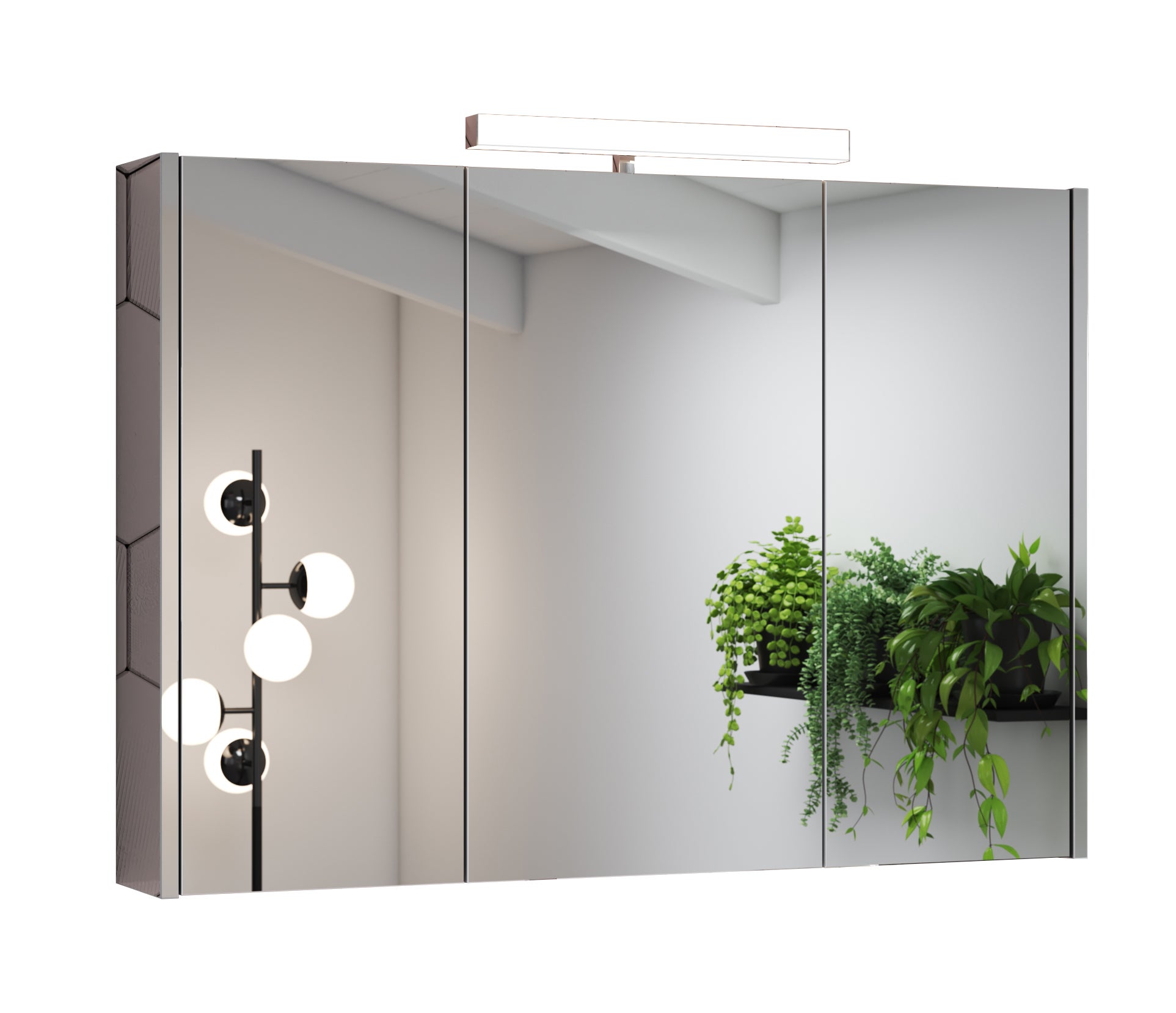 Specchio contenitore 3 ante con fianchi a specchio e lampada a LED 6,5W L.100 H.70 P.15,5 cm