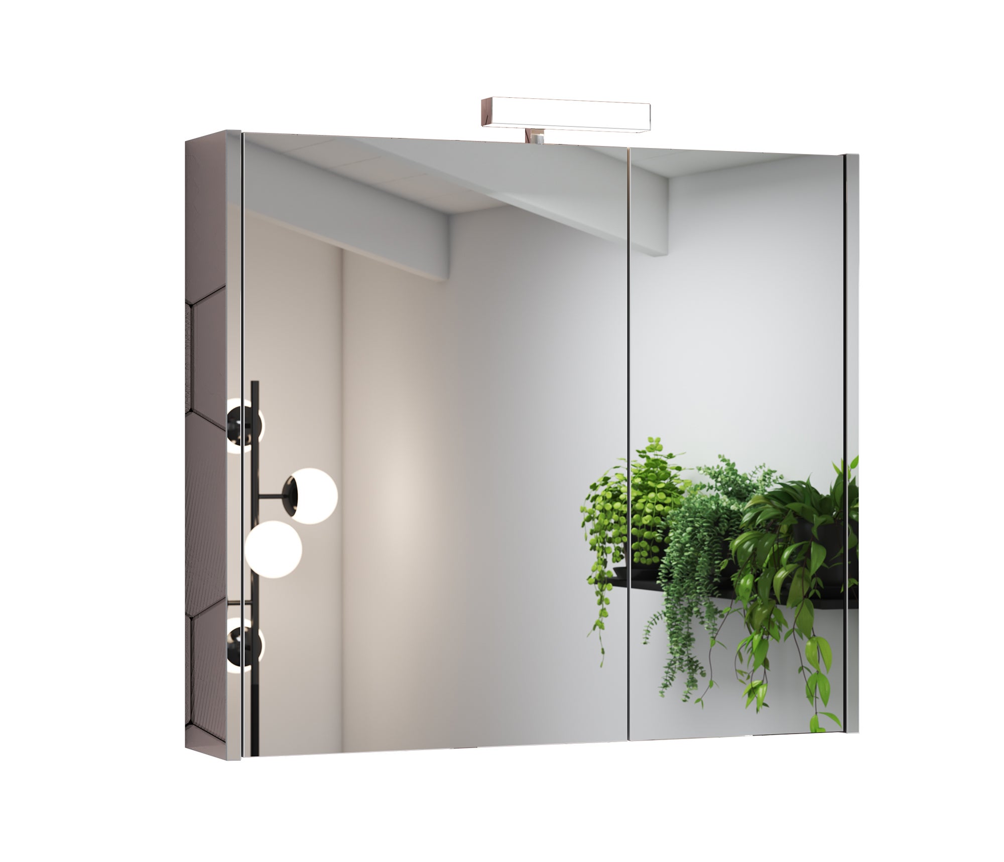 Specchio contenitore 2 ante con fianchi a specchio e lampada a LED 3W L.80 H.70 P.15,5 cm