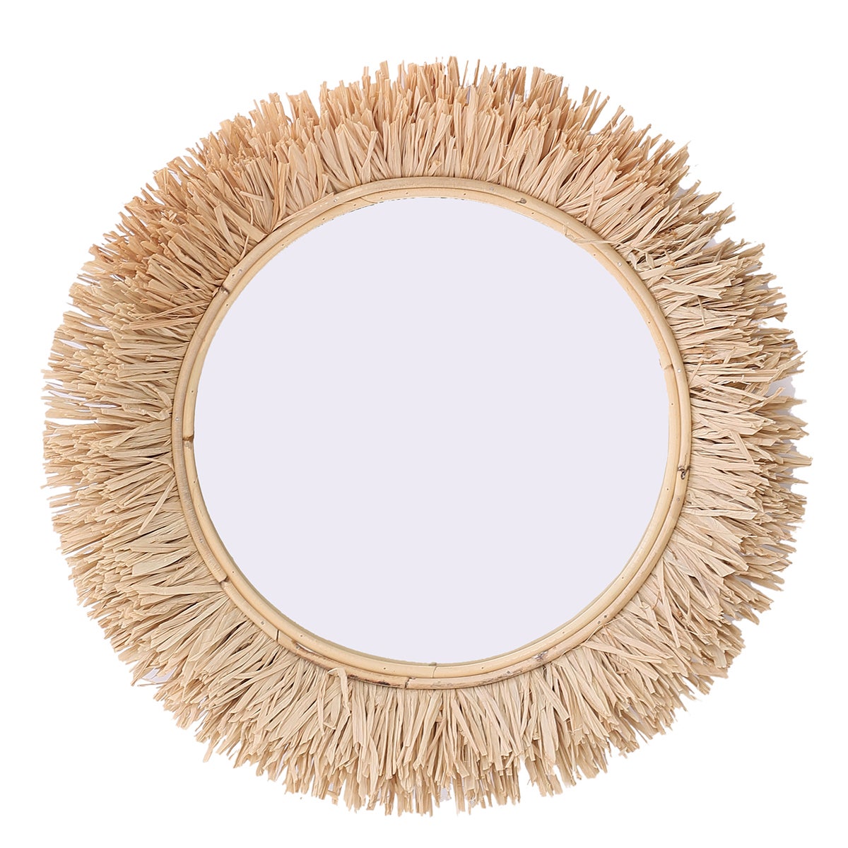 ORIGEN Home Decor Specchio rotondo Grass - Marrone 28x28x4 cm Aggiungi un tocco di eleganza e stile rustico alla tua casa con questo specchio rotondo di @. Realizzato con materiali di alta qualità come palme e alghe, questo specchio vintage è perfetto per arredare il soggiorno, la camera da letto o il bagno. Il suo design funzionale e versatile lo rende il complemento ideale per qualsiasi ambiente, mentre la sua struttura in legno resistente alla corrosione garantisce una lunga durata. Misurando 45 cm x 3,5 cm x 45 cm e un peso netto di 600 grammi, questo specchio è leggero e facile da appendere a qualsiasi parete. Osate dare un tocco naturale ed elegante alla vostra casa con questo specchio rotondo di @.