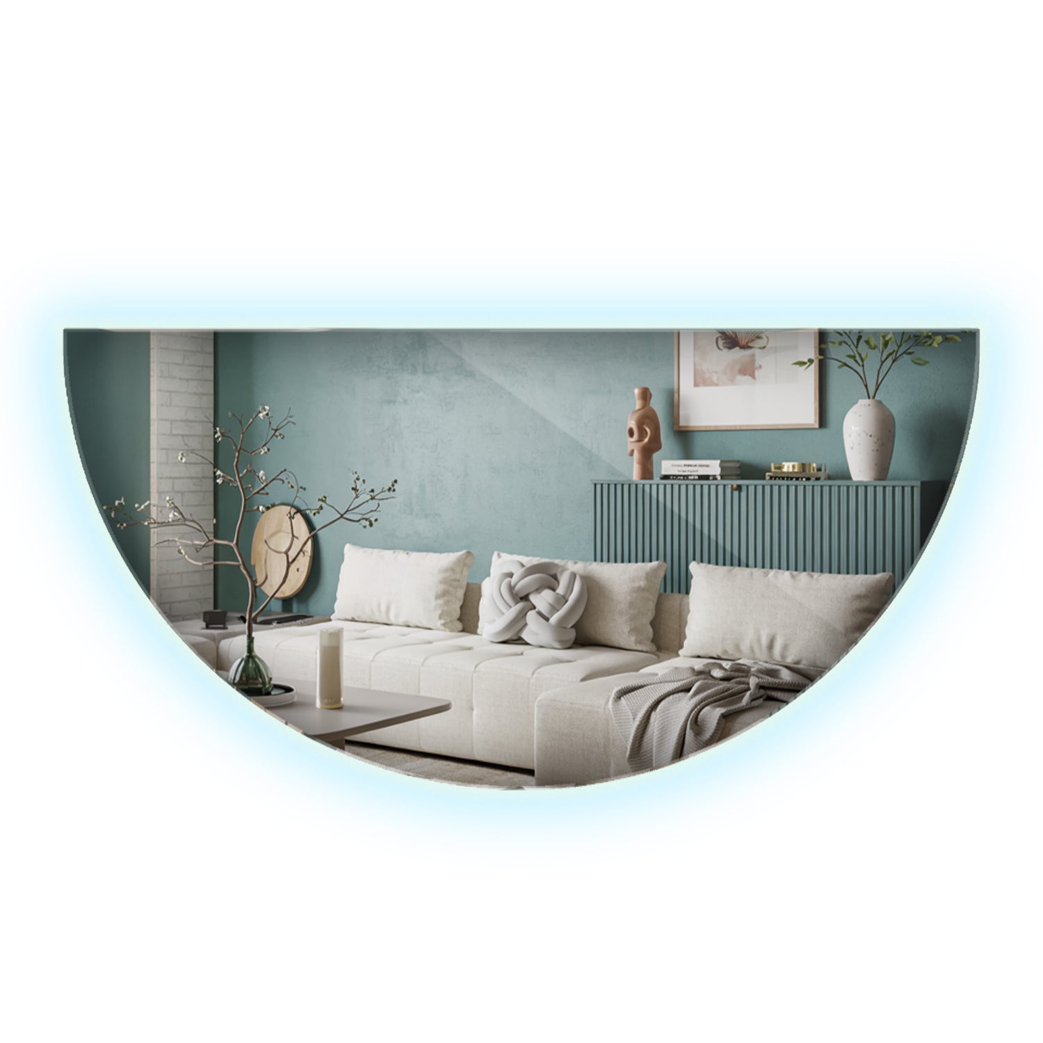 Lo specchio LED ArtPrintCave con forma semi-rotonda unisce estetica e praticità. La delicata illuminazione LED crea un’atmosfera rilassante, valorizzando il design minimalista dello specchio. Perfetto per bagno, camera da letto o soggiorno.