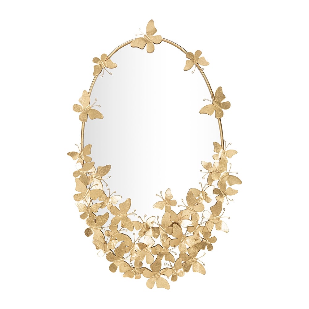 Specchio ovale da parete dorato con farfalle decorative Butterfly Wind
