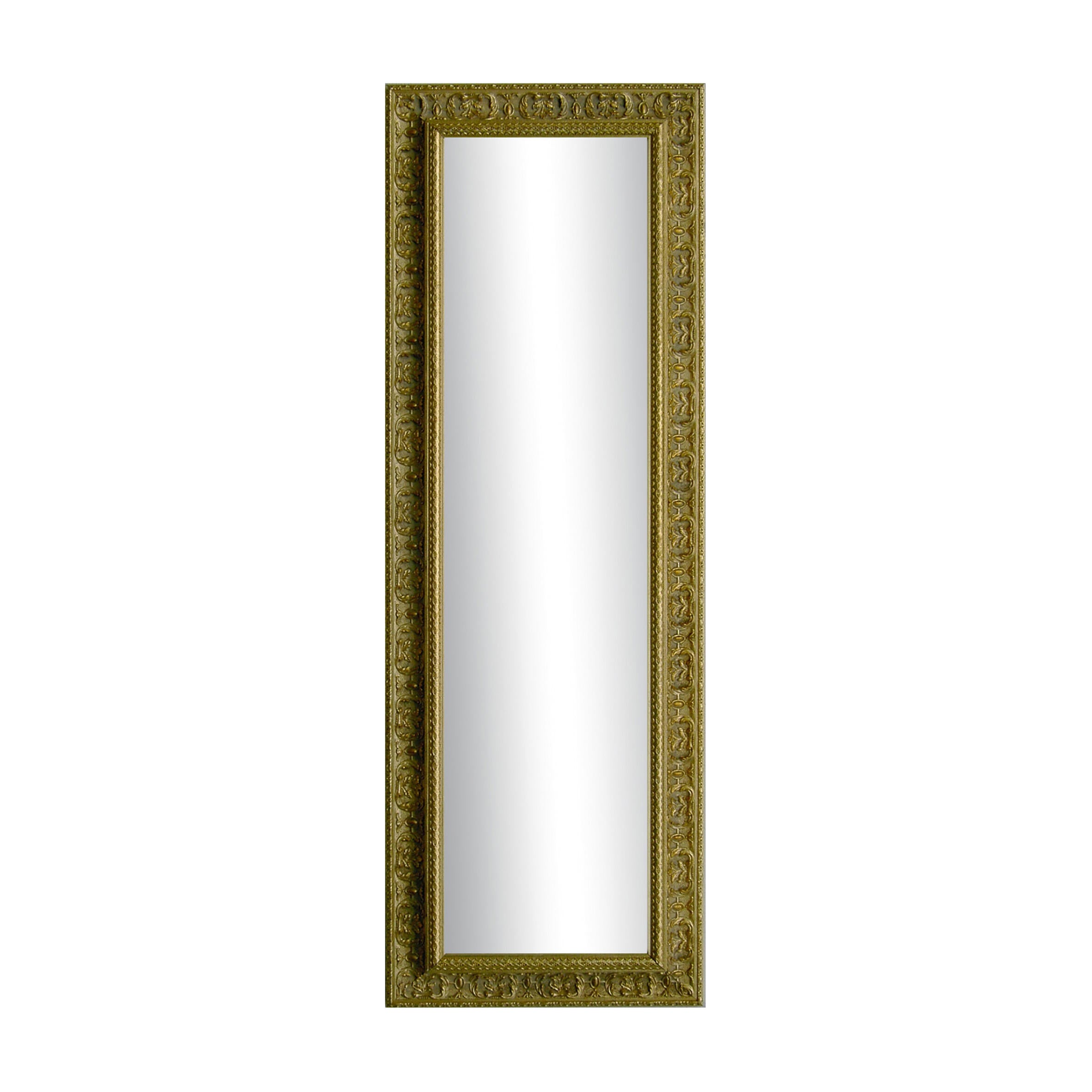 Storicità e New chic. Questo specchio con cornice forma rettangolare del modello Venere è ideale per chi ama lo stile neoclassico vivendo in una casa curata coi dettagli sofisticati, senza tempo e raffinato. La sua cornice sagomata con finitura opaca è interamente realizzata in legno color oro, materiale che che non distorce o perde le sue qualità a lungo termine, il retro dello specchio è in mdf. Le dimensioni dello specchio sono di H 167 cm X L 67 cm. Grazie alle sue dimensioni grandi, offre una visione intera della figura e può essere fissato a parete oppure appoggiato al pavimento (non è autoportante, dunque non ha una base propria ed è privo di un sostegno). E' installabile sia in posizione verticale che orizzontale, rendendolo un oggetto di arredamento molto versatile.