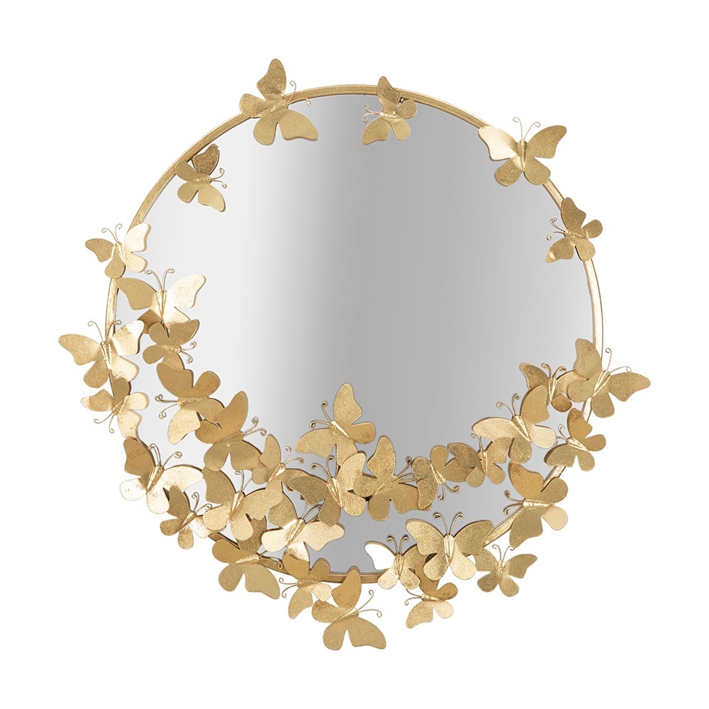 Specchio rotondo da parete dorato con farfalle decorative 74cm Butterfly S