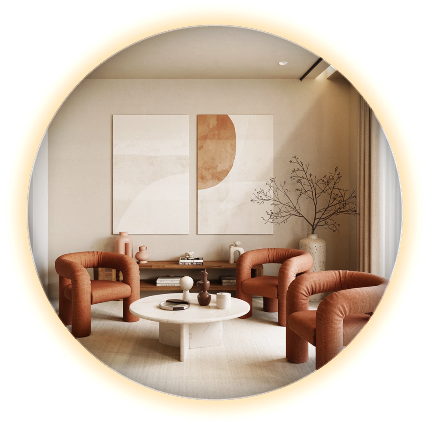 Specchio rotondo LED con luce calda, design elegante per soggiorno 40 cm, ArtPrintCave