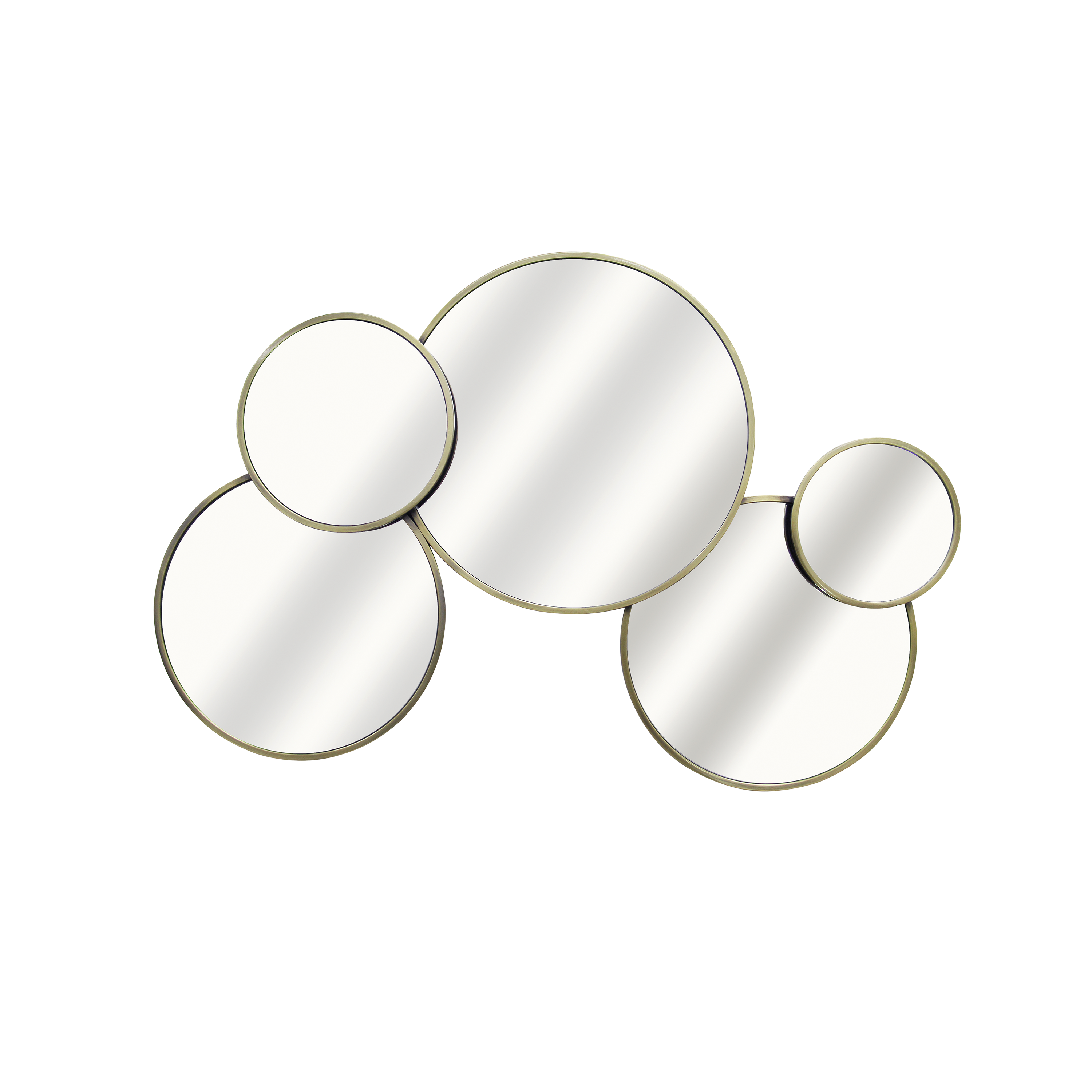 La combinazione di specchi rotondi piccoli e grandi porterà originalità ai tuoi interni. Il suo colore dorato offre un tocco glamour alla stanza prescelta. Si adatta perfettamente sopra un mobile del soggiorno, o in un ingresso.