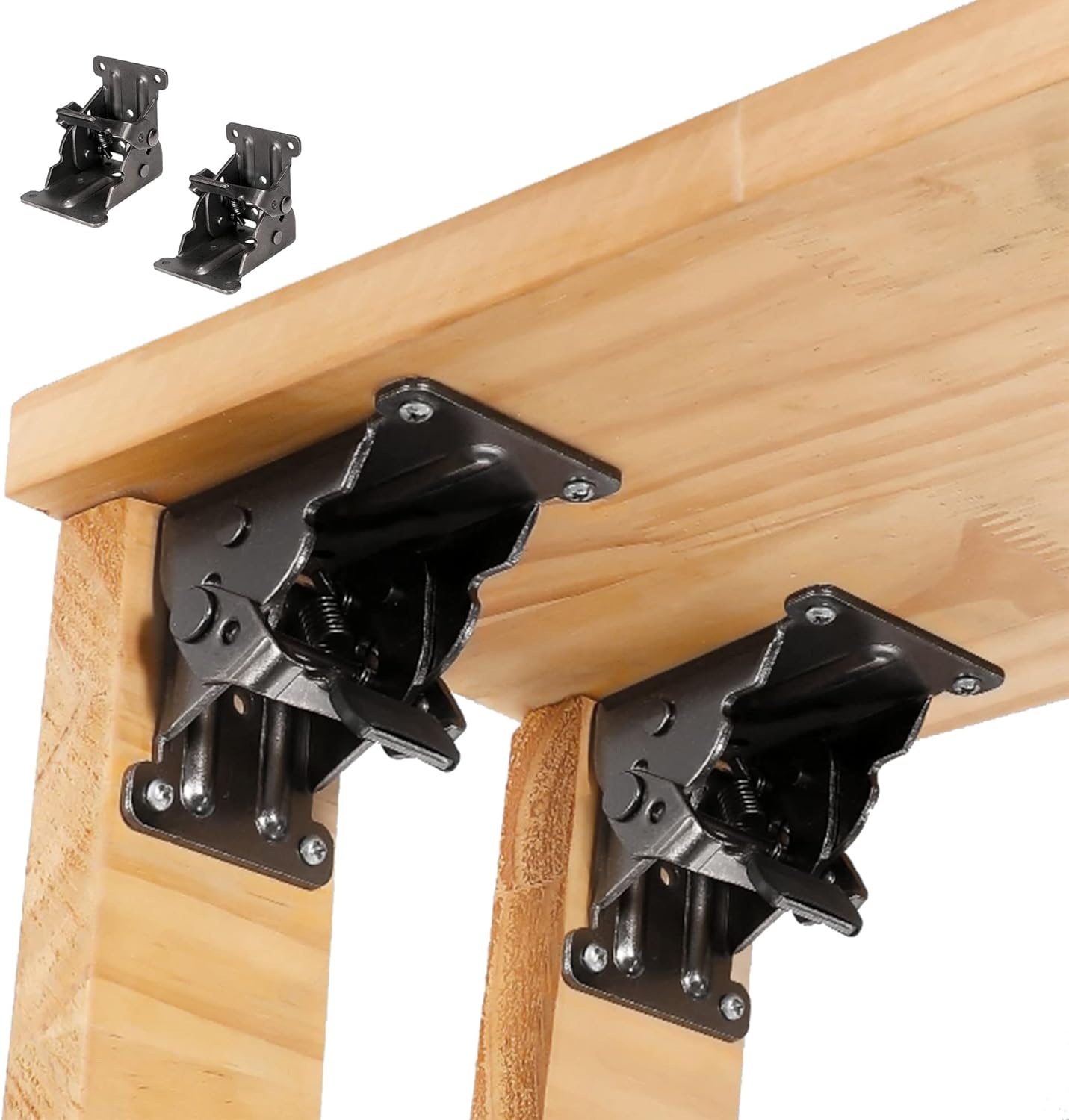 Quantità: 1 paio di supporti per tavoli pieghevoli. Supporti pieghevoli, adatti per gambe di tavoli angolari e supporti per gambe o panche. Materiale: realizzato in un'enorme piastra di acciaio spessa, di alta qualità e durevole. Stabile, ogni staffa può sostenere una capacità di 500 libbre, funziona bene e stabilmente. Funzione: raccordo incernierato in metallo, raccordo incernierato con meccanismo di bloccaggio quando piegato e aperto, angolo di apertura di 90 gradi quando la staffa è in posizione "su". Facile installazione: l'installazione è semplice e pieghevole con un blocco nello stato piegato e aperto. Usi multipli: adatto per gambe di tavoli per mobili, letti pieghevoli in legno, letti grandi, letti in ferro, tavoli da pranzo, piattaforme fai-da-te, tavoli e altre ampie applicazioni, può anche essere utilizzato come una semplice staffa invisibile.