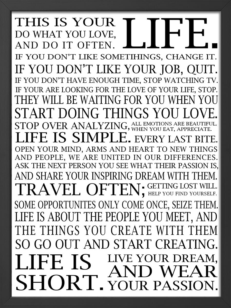 La stampa incorniciata Life INSPIRE in stile moderno esprime il proprio gusto distinguibile in stile loft. L'immagine in carta è perfetta per dare un tocco a tema bianco e nero alle tue pareti. L'asta in legno. Dimensioni totali: larghezza 50 cm e altezza 70 cm.