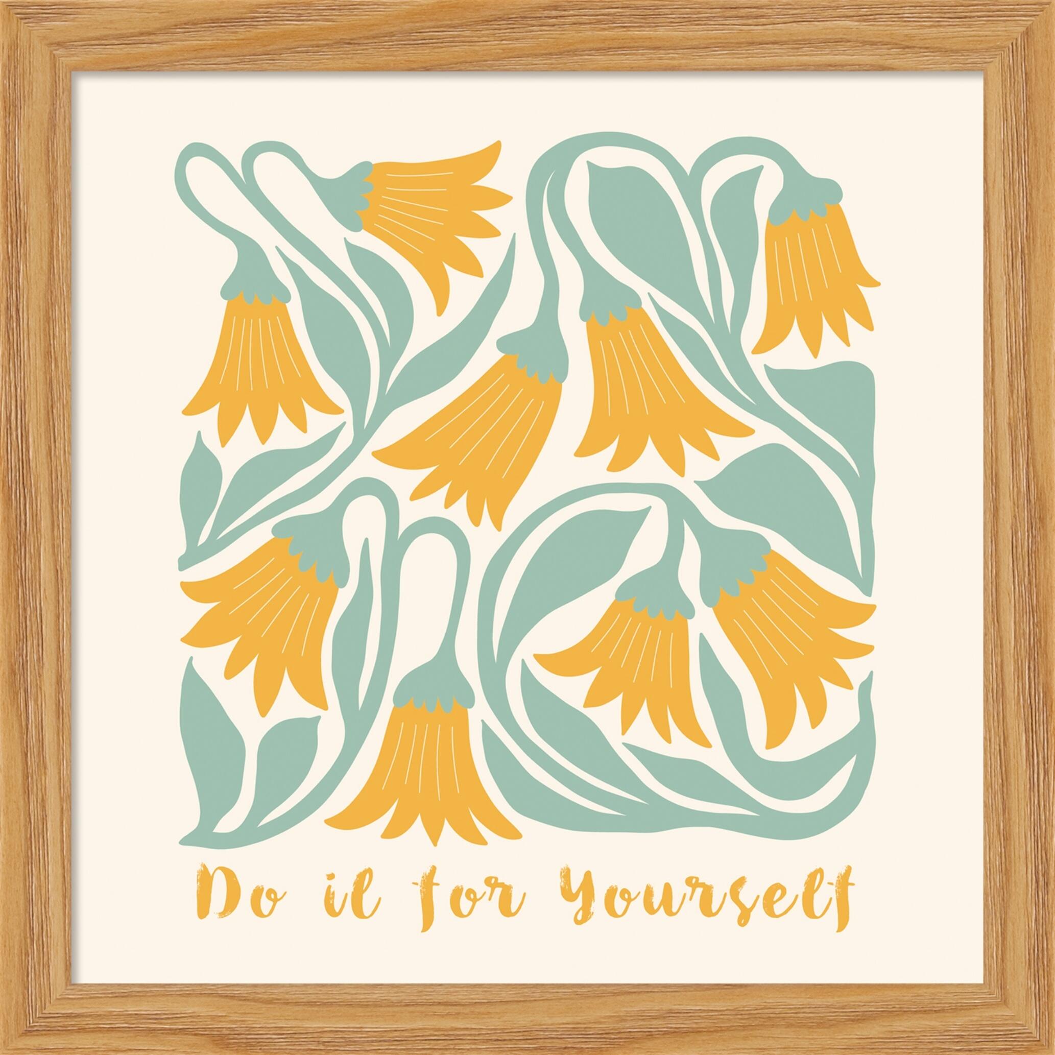 La stampa incorniciata su mdf Do It For Yourself è un'opera d'arte moderna e accattivante, realizzata in Italia da Bubola&Naibo. È perfetta per decorare la cameretta dei bambini, con il suo stile astratto e i suoi colori vivaci: giallo, dorato e verde su sfondo bianco. La cornice in legno massello di faggio è robusta e durevole, e la stampa ad alta definizione su MDF garantisce una resa opaca e senza riflessi. La misura interna è di 22,8cmX22,8cm, mentre quella esterna è di 25cmX25cm. È dotata di accessori di fissaggio inclusi.