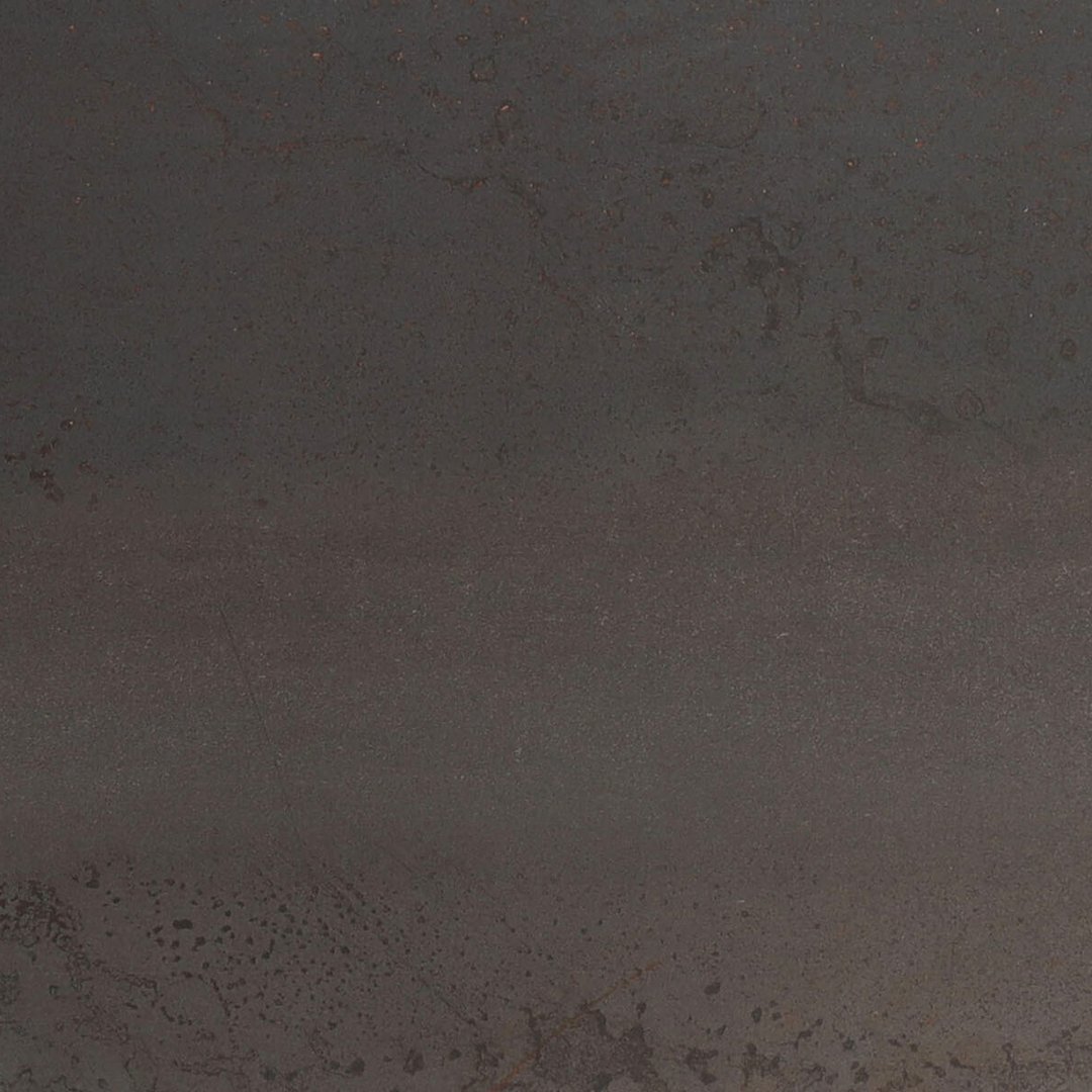 Superficie effetto metallo leggermente ossidato dai toni tenui e industriali. Gres porcellanato robusto e durevole, adatto alla posa di pavimenti e rivestimenti interni.