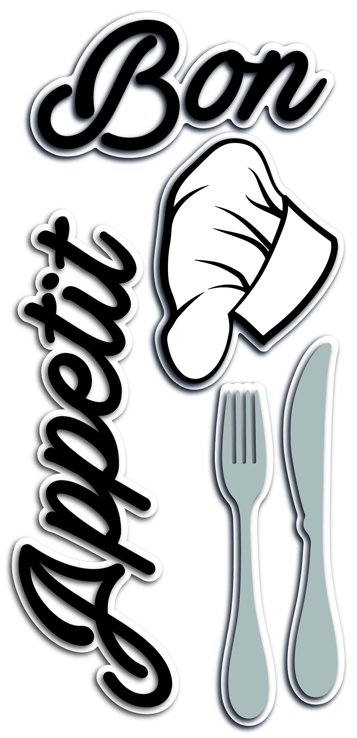 Sticker Bon appettit 15x31 cm bianco/nero/grigio