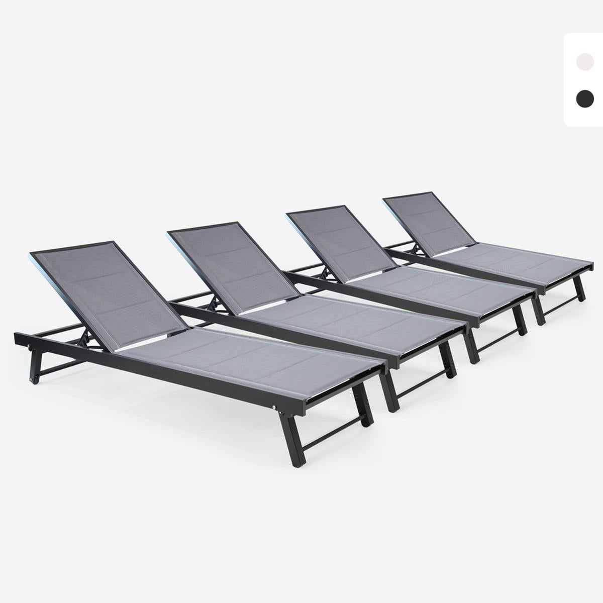 Stock 4 lettini prendisole da giardino piscina alluminio ruote Rimini - Grigio Scuro