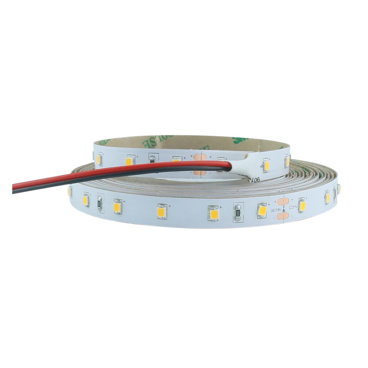 Striscia luminosa a LED 5m 24V per uso interno. 300LED SMD2835, 8W/m, luce naturale 4000°K, 1050Lm/m. Angolo di illuminazione 120°. Larghezza 10mm. Durata 25000h.