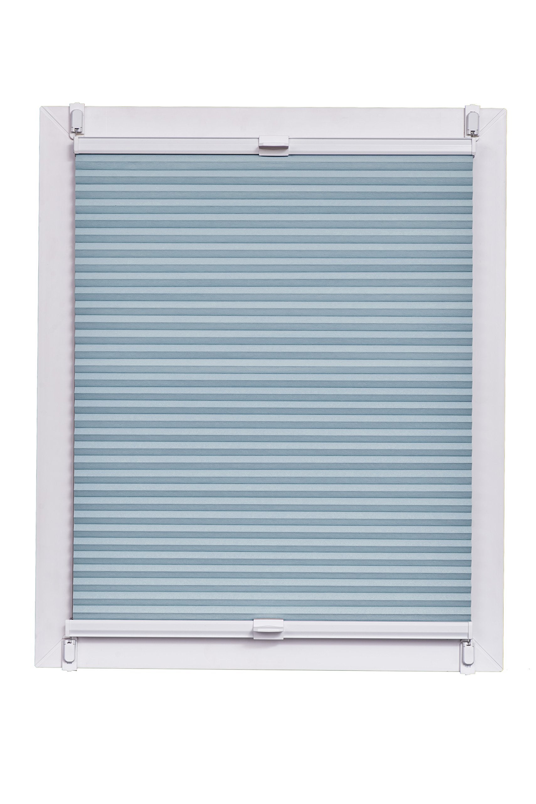 SunL Ines Plissettata Made in Germany, Oscurante, Klemmfix Guida Blu, Grigio, Bianco, 135 X 150, Tessuto, Blu, 135 x 2.3 x 150 cm