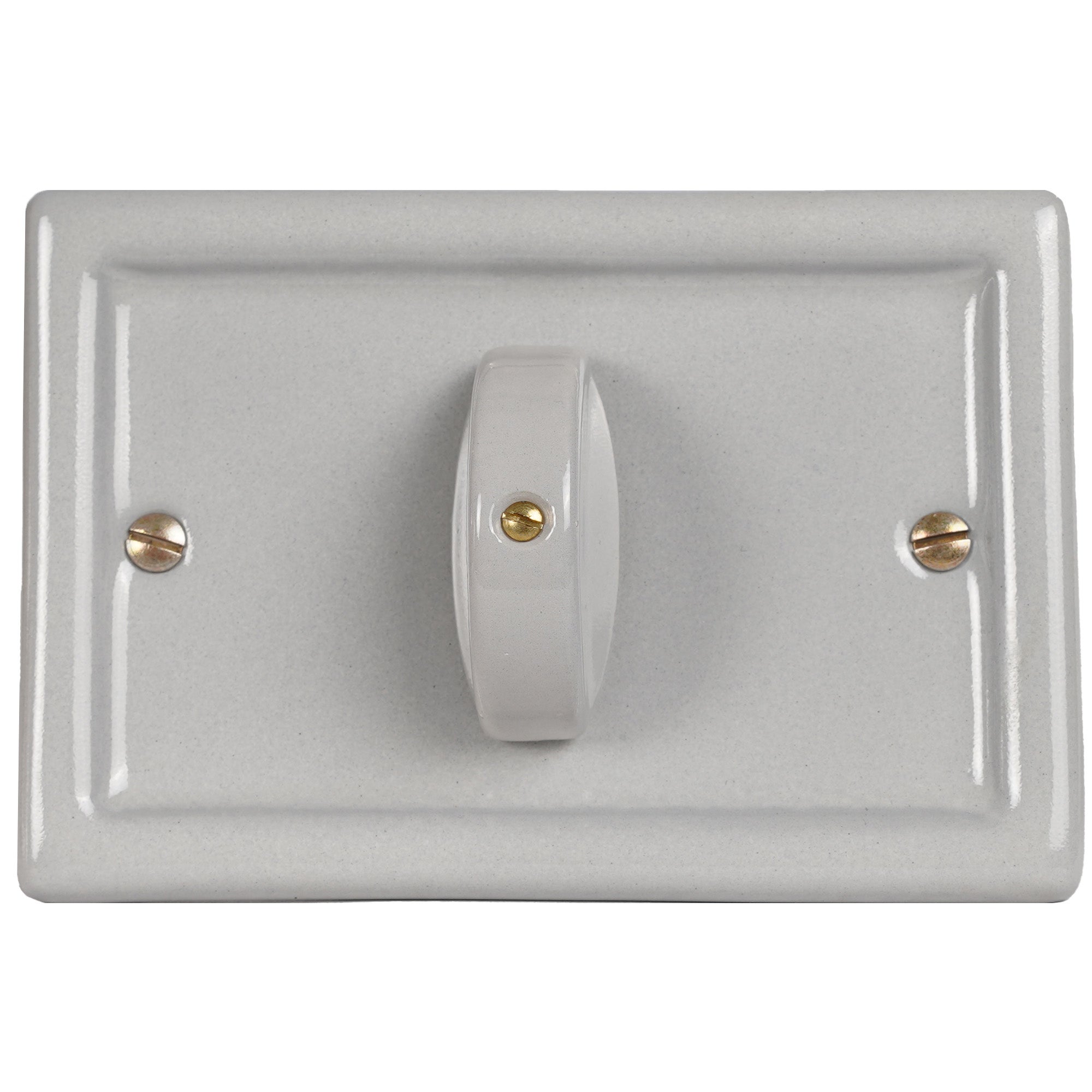 Placca rettangolare in ceramica 113x77 mm con pulsante rotativo 10AX 250V per scatola a 3 moduli, colore grigio. Serie Country Fanton