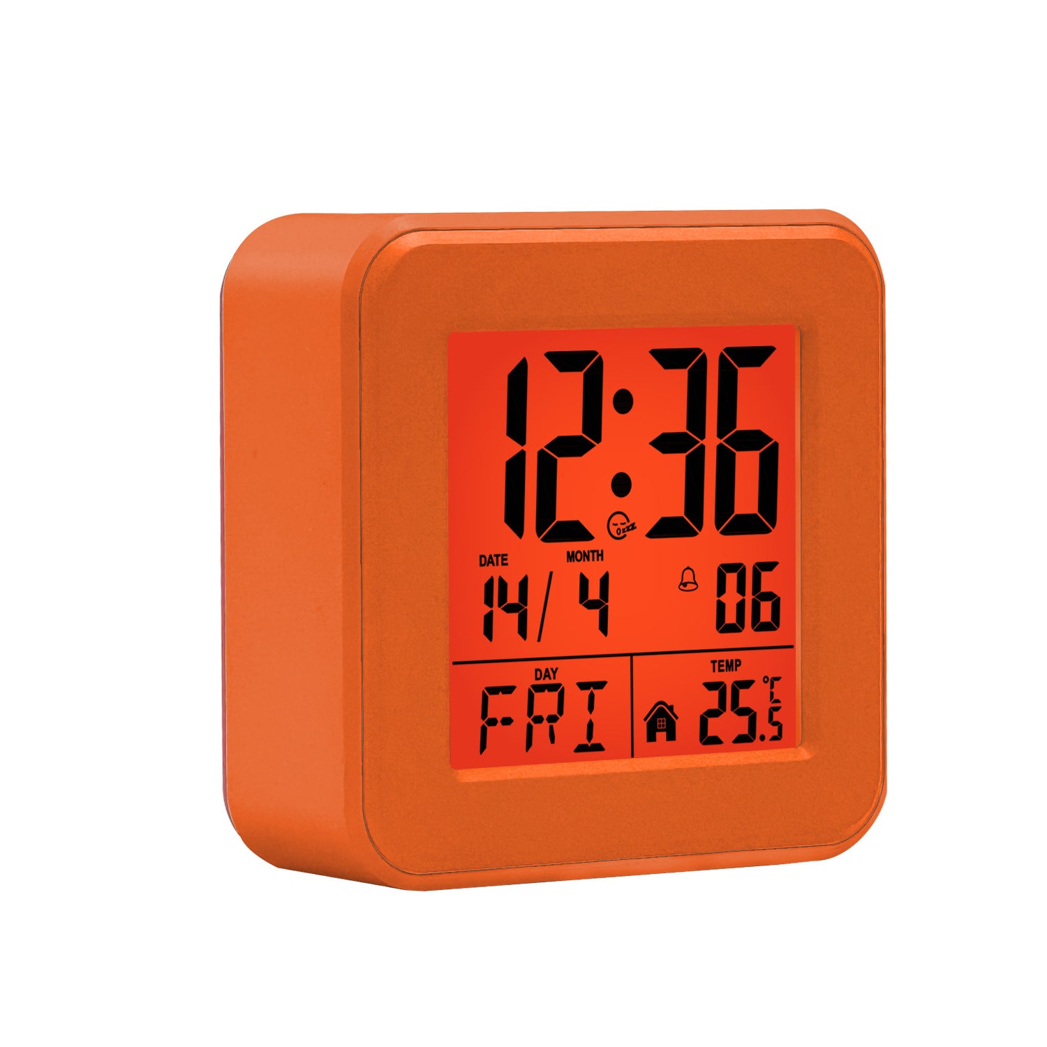Sveglia digitale atomica LED con temperatura, data, allarme potente e snooze, facile da configurare per casa, ufficio e studio – arancione