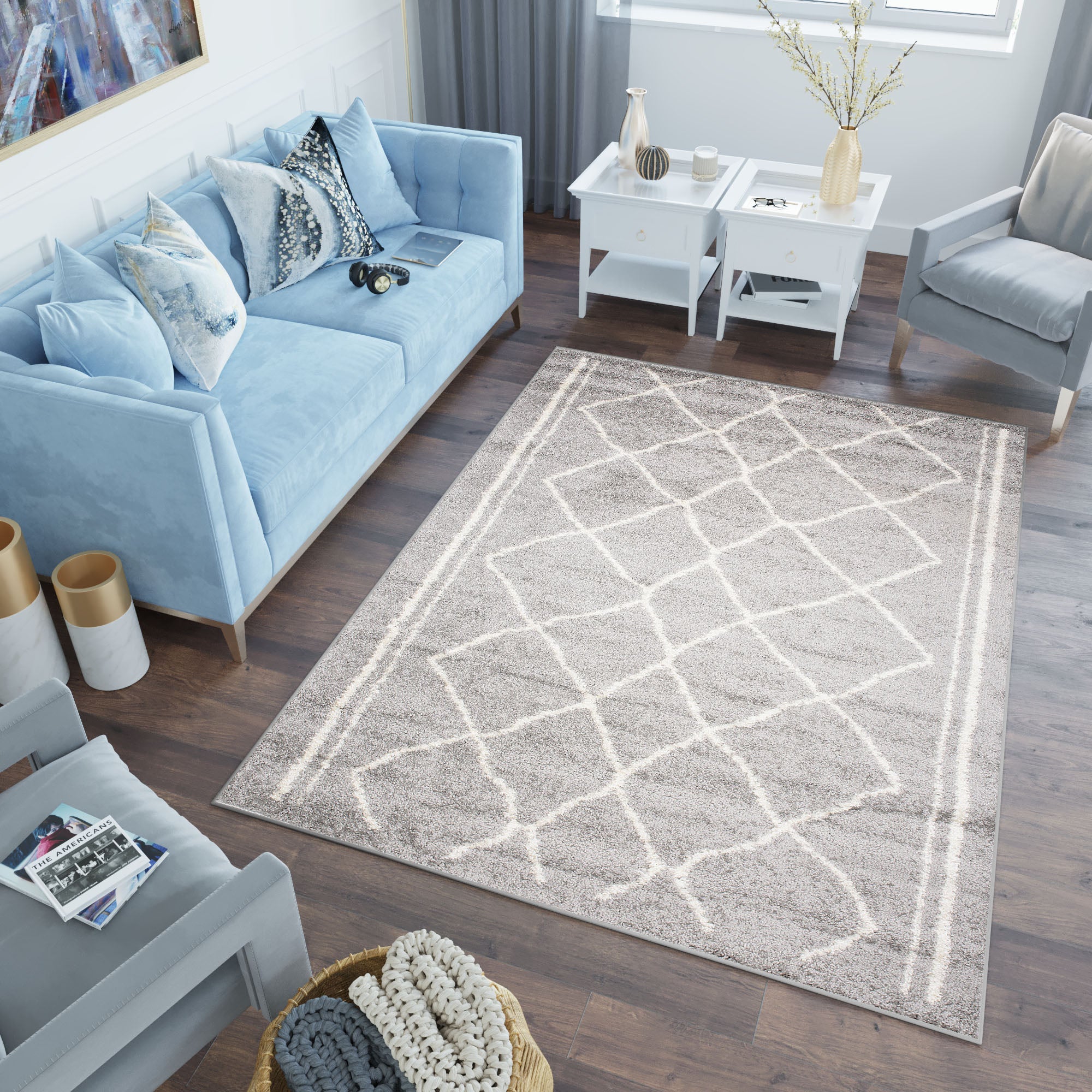 TAPISO Delhi Tappeto Shaggy Moderno Morbido Soggiorno Salotto Grigio Panna Geometrico Astratto Rombi Linee 60 x 100 cm