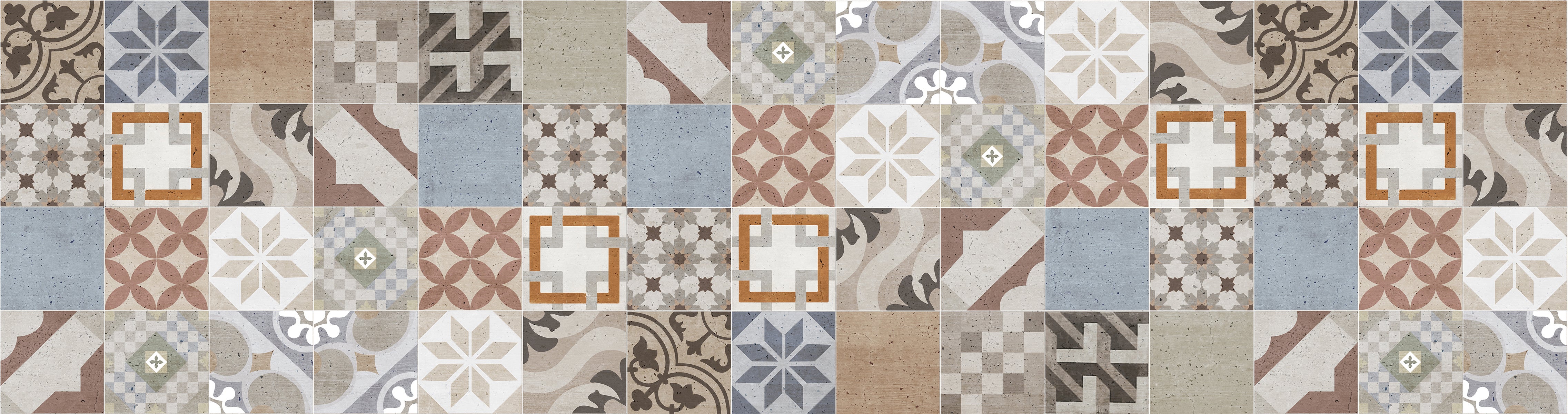 Tappeto antiscivolo in vinile Tiles vntage 3 66x250 cm - PVC stampato, lavabile, ignifugo, per il salotto o la cucina, stile idraulico