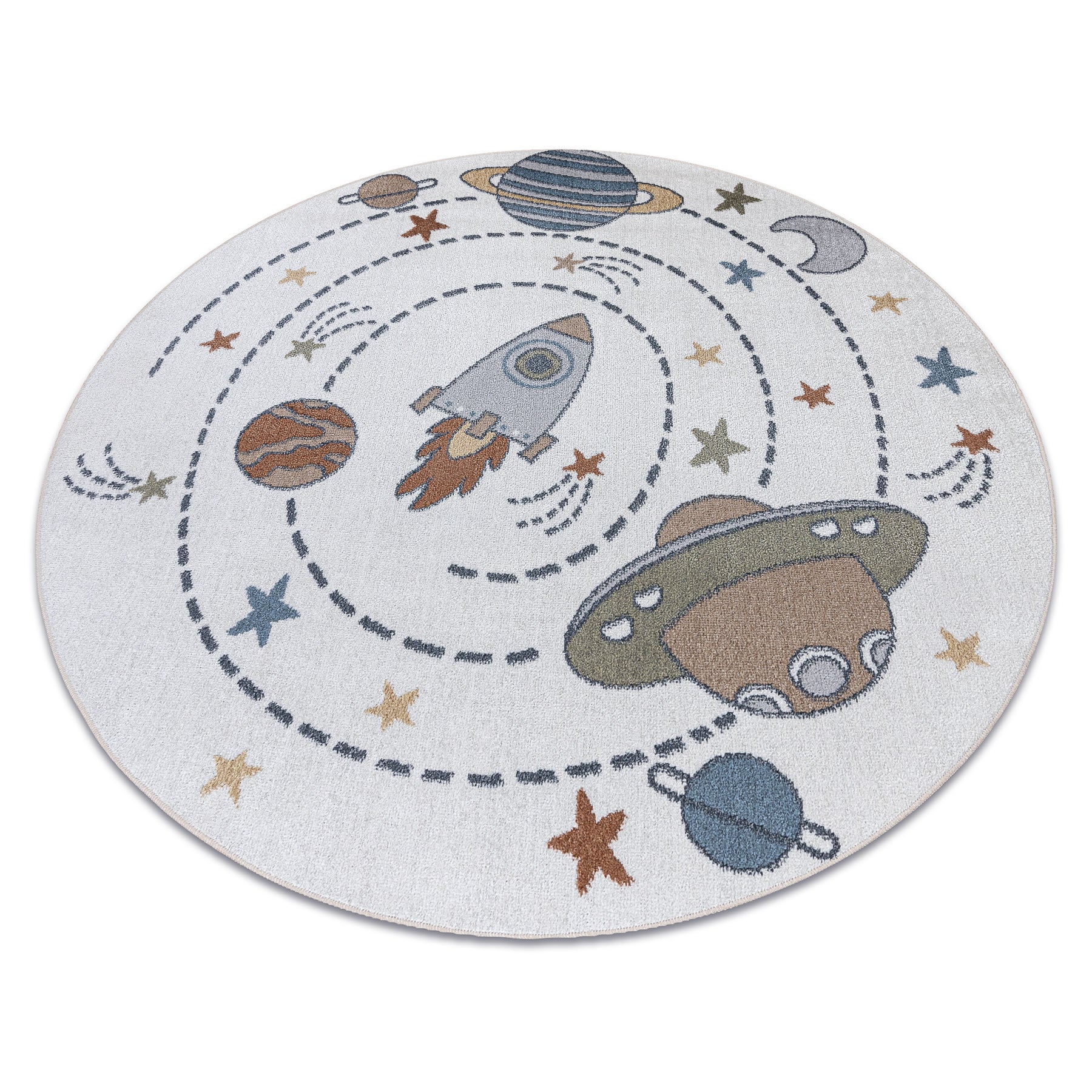 Tappeto BONO 8288 cerchio Spazio, pianeti crema/antracite rotondo 160 cm