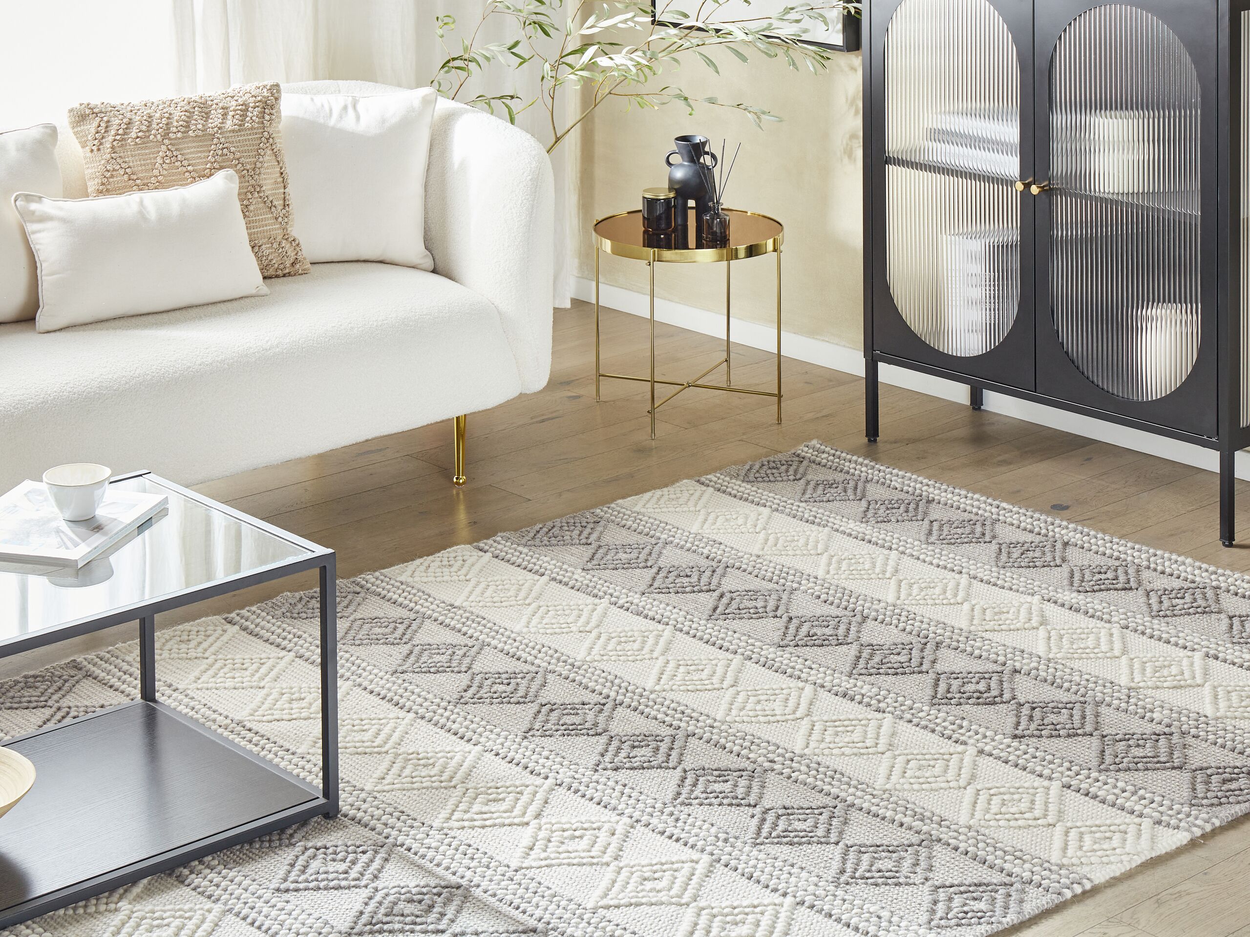Tappeto lana beige chiaro e grigio chiaro 160 x 230 cm BOZOVA