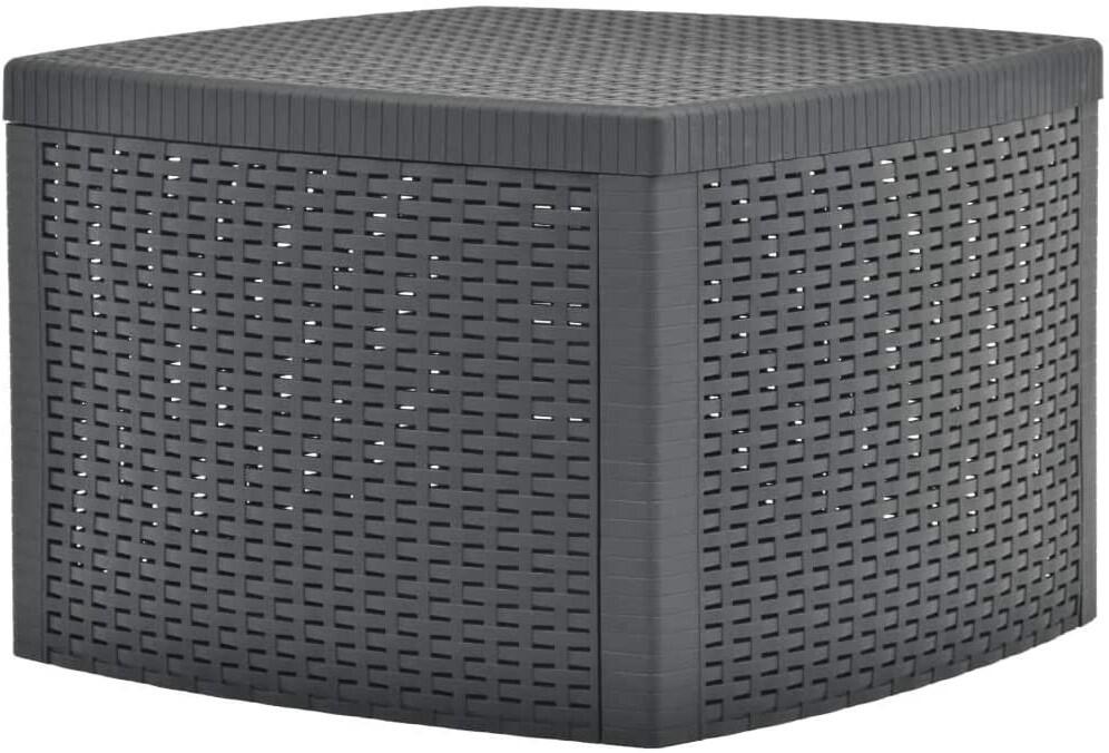 Tavolino da giardino quadrato LIPARI in resina con elegante aspetto in rattan. Componibile e robusta, coperchio removibile. Quindi è doppio uso: Come tavolino d'appoggio e contenitore. Colore grigio antracite. Dimensioni: 53 x 53 x 40 cm (larghezza x profondità x altezza). Resistente alla ruggine e alle deformazioni dovute agli agenti atmosferici/muffe/smog/polvere. Sconsigliato utilizzo su superfici lisce. Grazie al robusto sistema plug-in, il tavolo può essere allestito in un batter d'occhio. Grazie al coperchio rimovibile, il tavolo offre molto spazio di archiviazione all'interno.