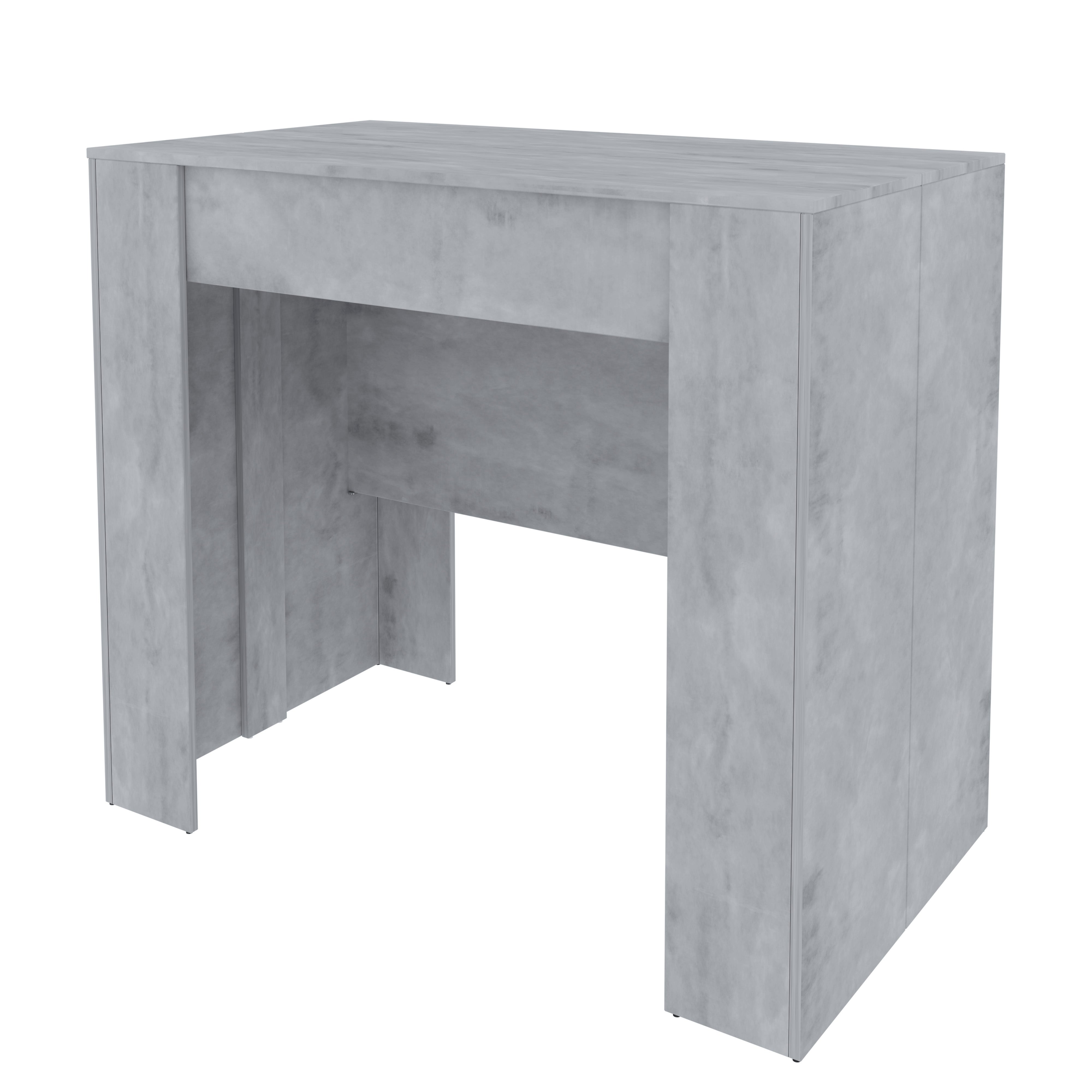 Con una finitura in grigio cemento e realizzata in melaminico antigraffio, questa consolle include un sistema allungabile con meccanismo di apertura telescopico e un sostegno centrale che garantisce stabilità ottimale.