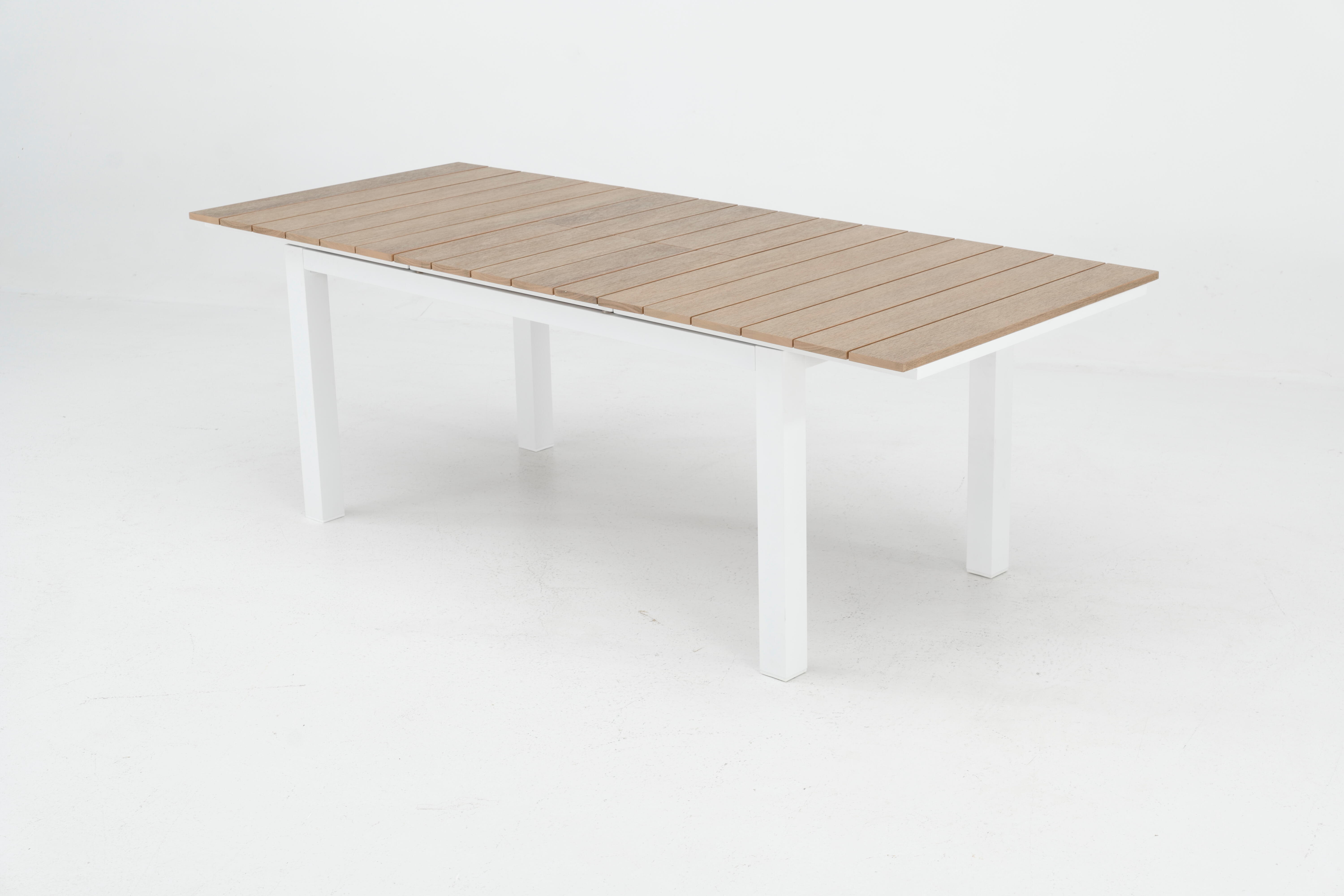 Tavolo da giardino allungabile in alluminio bianco con piano in polywood per 6 persone 156/220x90cm