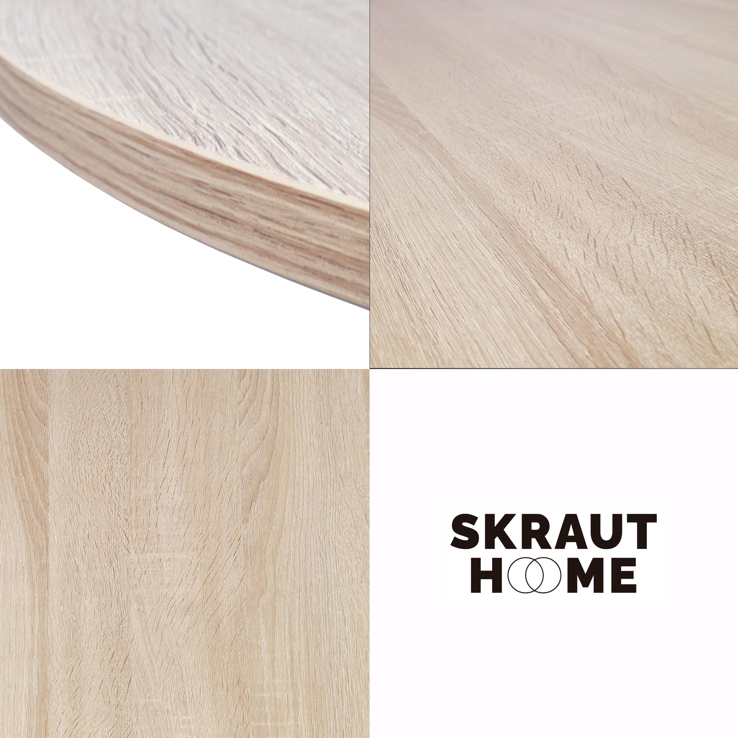 Tavolo Da Pranzo rotondo, 90x90x77cm, per 4 persone, Colore Rovere, Gambe Metalliche In Nero Opaco