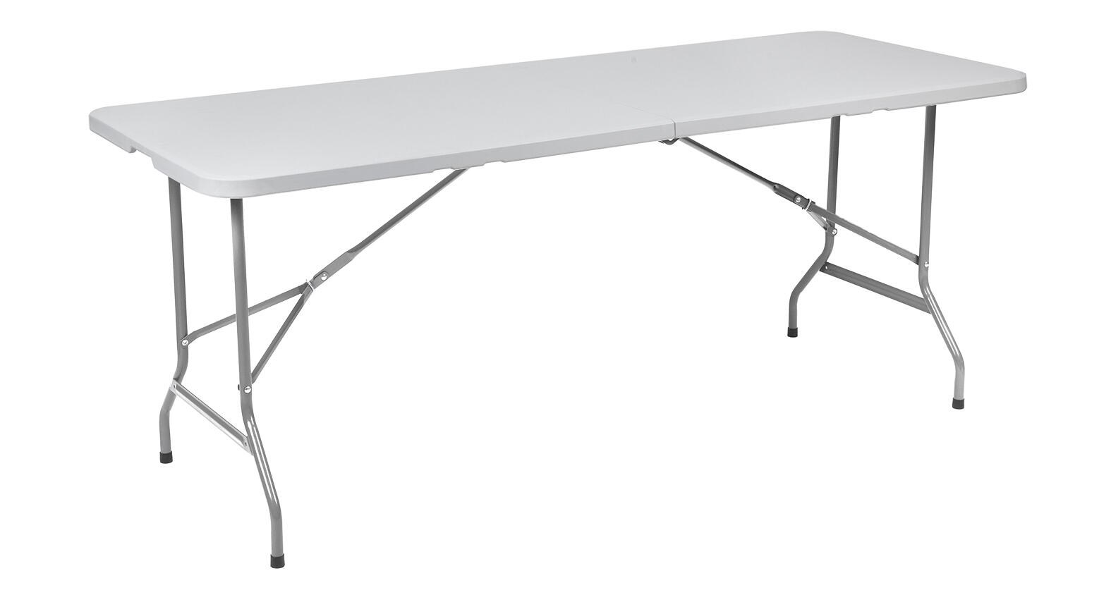 Tavolo in plastica bianco hdpe con struttura in metallo verniciato. Pieghevole e facilmente trasportabile. Articolo già assemblato