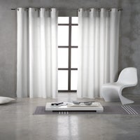 Inspire modello Ayden velato trasparente realizzato con una miscela di lino e poliestere bianco unito. La parte superiore è rifinita con occhielli, che consentono una facile installazione su tutti i tipi di barre. Questa tenda ti permetterà di vestire le tue finestre, il suo design e il suo colore renderanno più facile che il risultato finale sia ottimale, e sono un accessorio tessile con cui rinnovare completamente una stanza. Permette inoltre di filtrare la luce che entra negli ambienti, guadagnando privacy e risparmiando sui consumi energetici. Misure: 140 x 270 cm (larghezza x altezza).