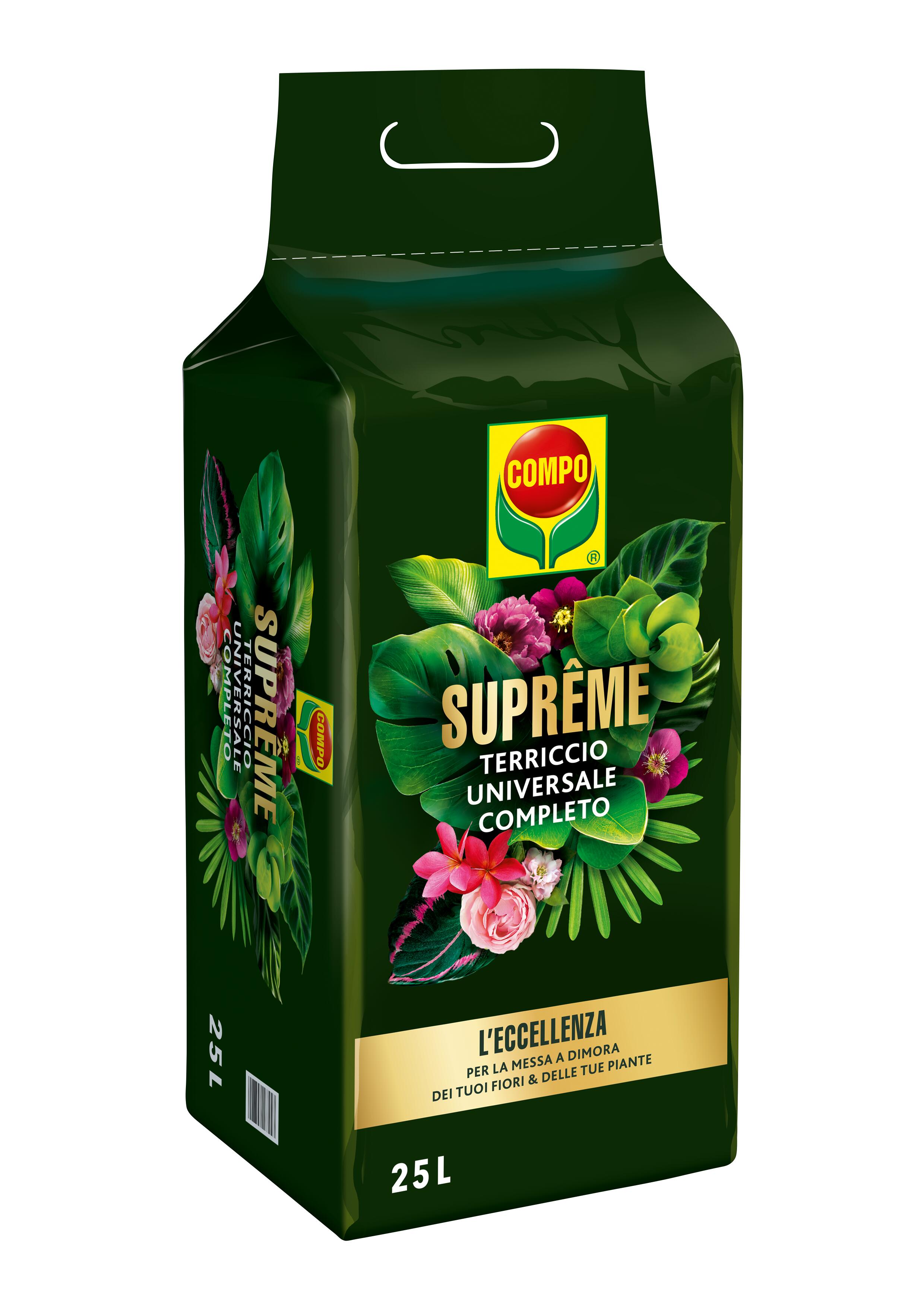 Terriccio COMPO universale e pianta da interno e pianta fiorita e gerani e piante fiorite da esterno e piante verdi 25L
