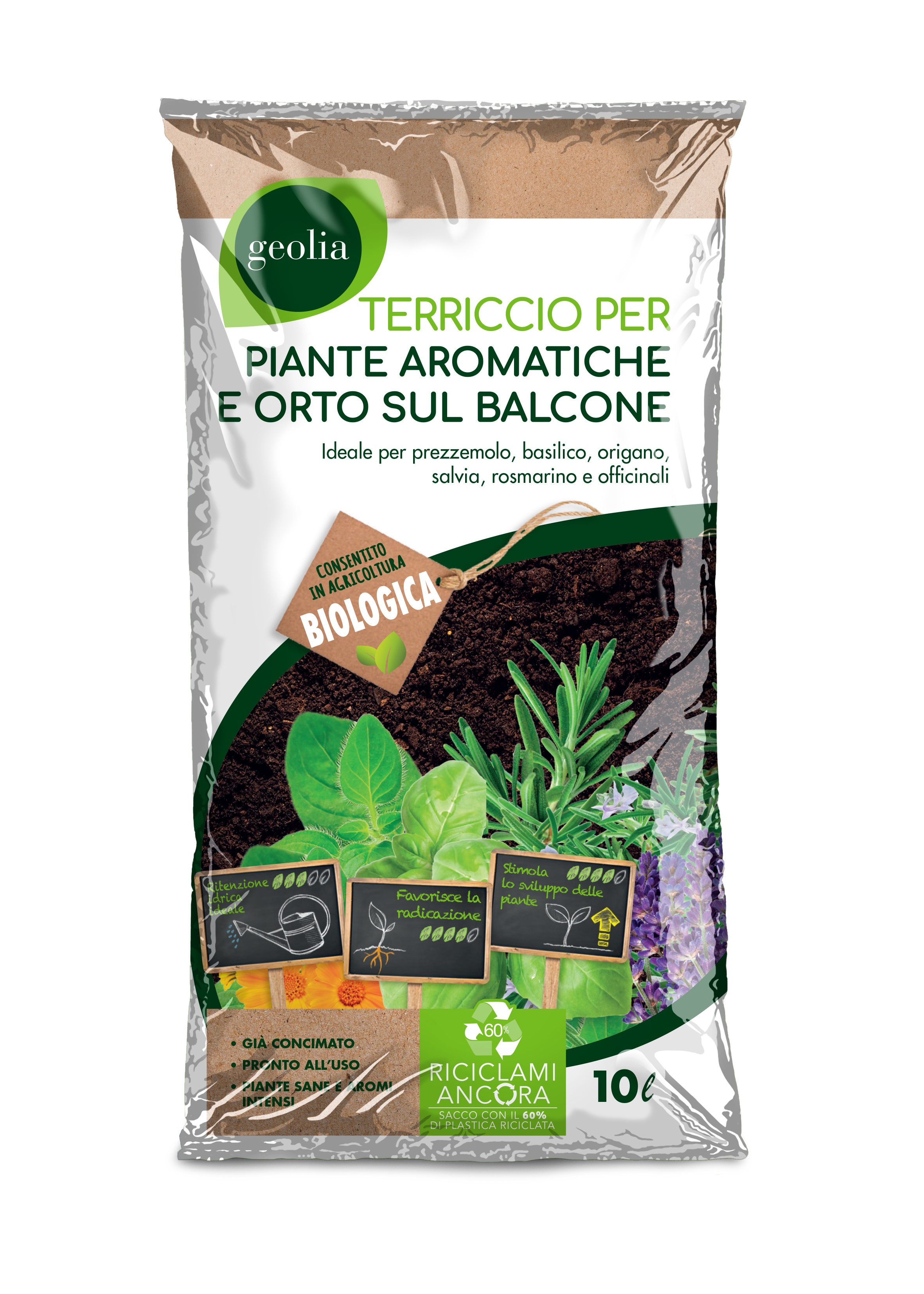 Terriccio GEOLIA per piante aromatiche e orto sul balcone10L