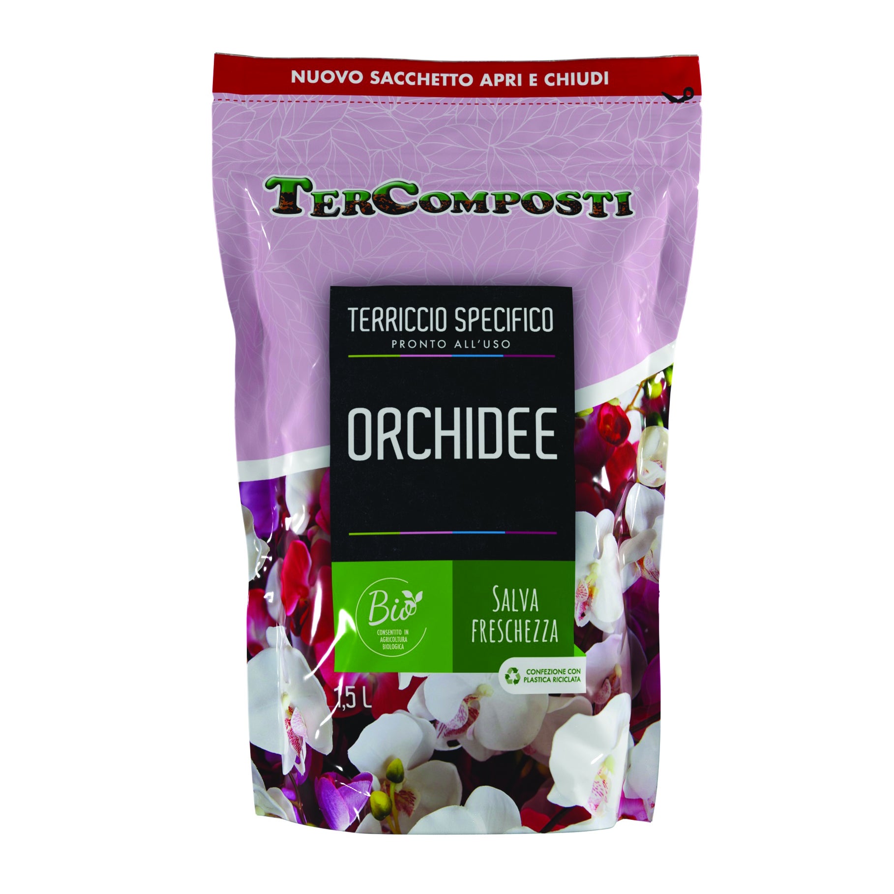 Il terriccio per Orchidee TerComposti è un prodotto ideale per la coltivazione delle principali varietà di orchidee, come Cymbidium, Phalaenopsis, Cattleya ecc. Per queste tipologie di piante è necessario un prodotto altamente poroso e stabile, con ridotta ritenzione idrica per non provocare fenomeni di ristagno e marciumi. Infine, la confezione salva freschezza consente di conservare il prodotto sia all'interno che all'esterno della propria abitazione e permette un utilizzo del terriccio ponderato nel tempo.