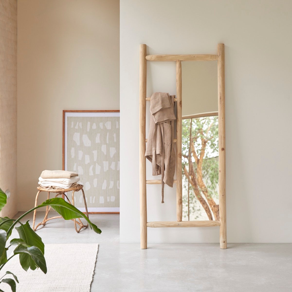 Posizionato contro una parete, questo specchio e portasciugamani, realizzato in materiale naturale con finitura verniciata, sarà il tuo compagno ideale ogni giorno.